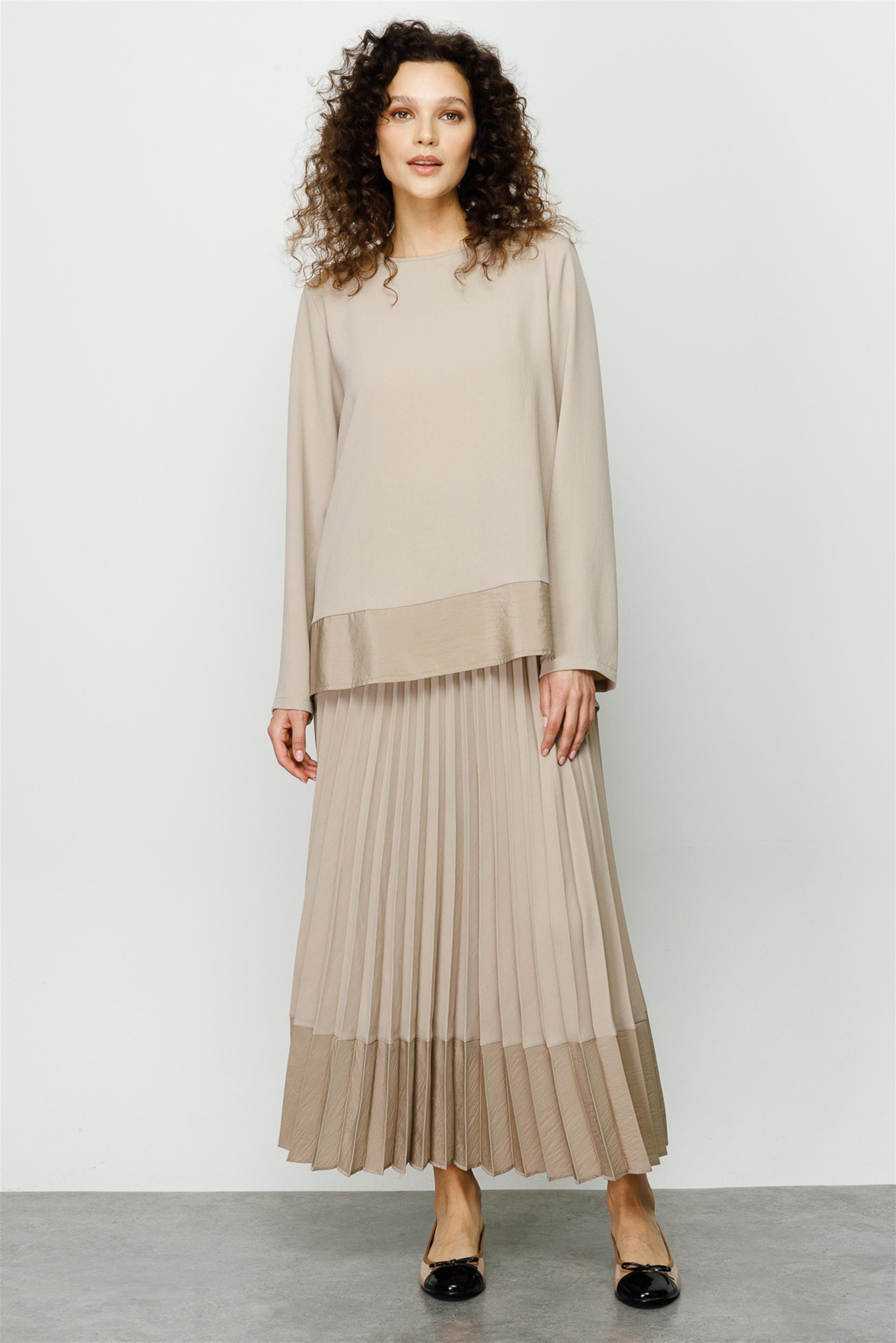 Tafta Bant Detaylı Pilise Etekli Alt Üst Takım-Taş
