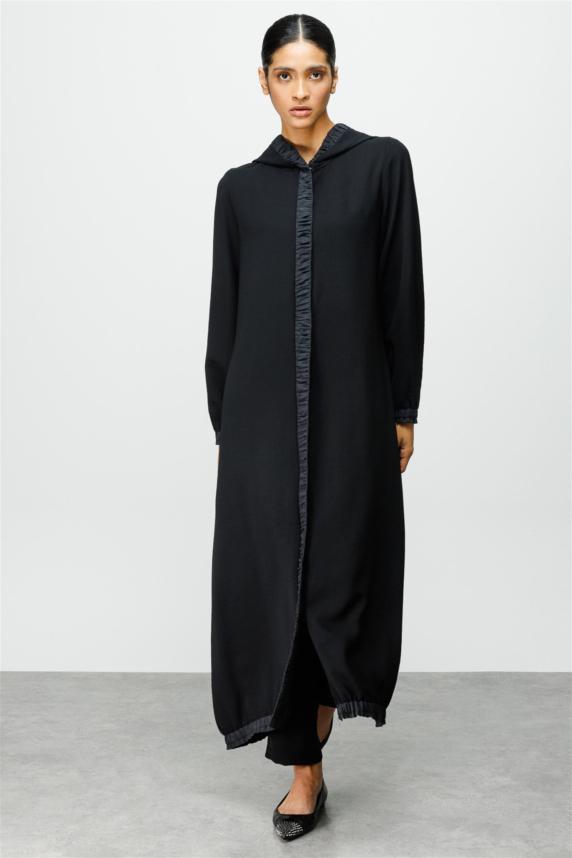 Tafta Büzgü Garnili Nefes Alan Zor Kırışan Kumaş Spor ve Sade Kap-Siyah (231549M BÜZGÜLÜ KAP-01)