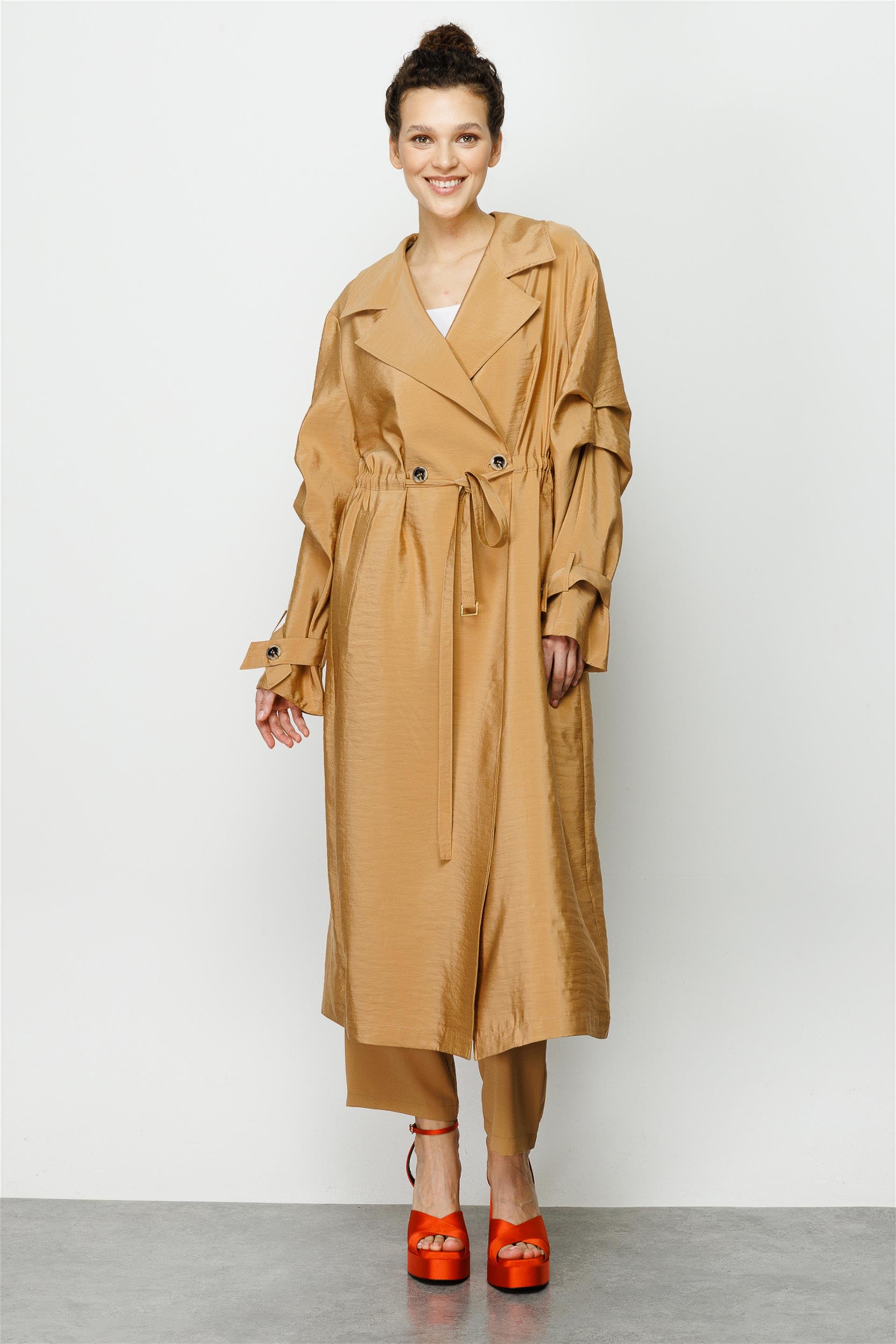 Tafta Loose Hafif İnce Zamansız Trench Kap-Camel (231890M TAFTA LOOSE-08)