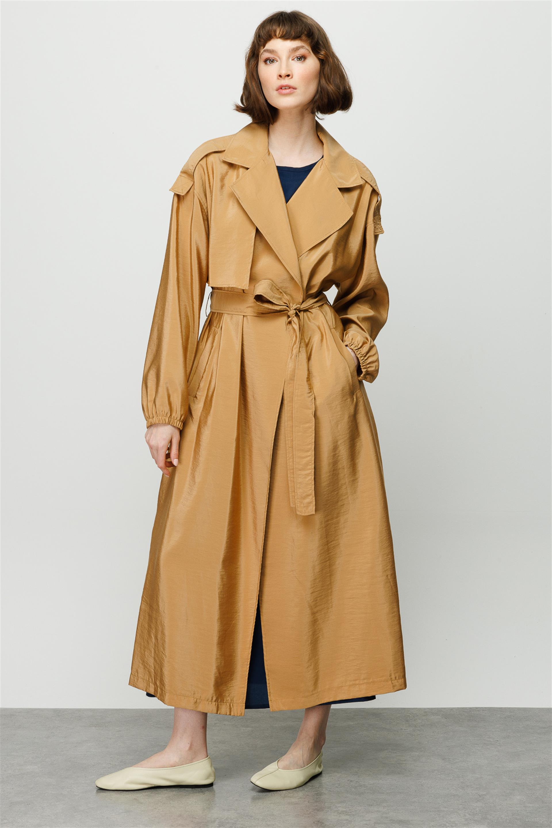 Tafta Loose Hafif İnce Zamansız Trench Kap-Camel (231562M TAFTA LOOSE-08)