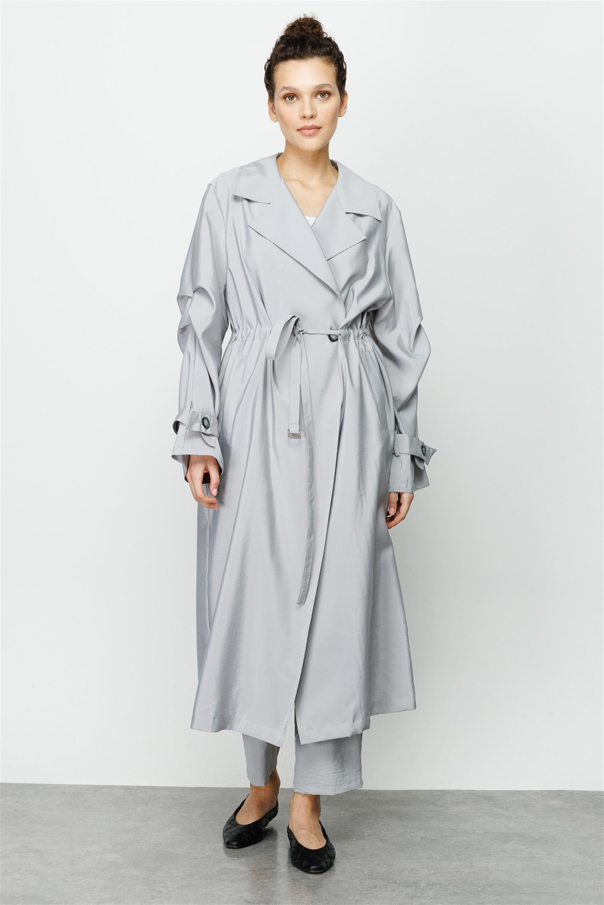 Tafta Loose Hafif İnce Zamansız Trench Kap-Gri (231890M TAFTA LOOSE-18)