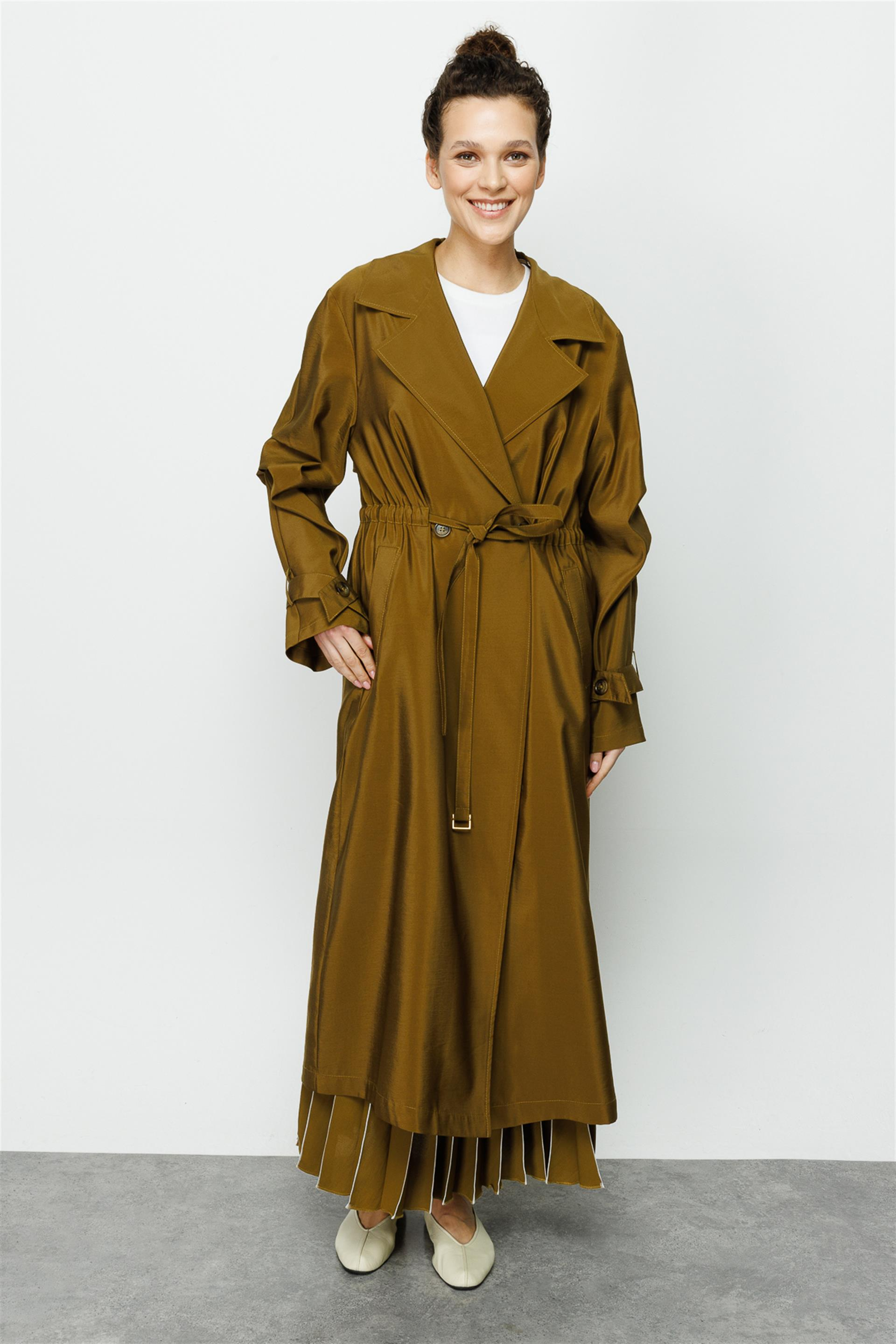 Tafta Loose Hafif İnce Zamansız Trench Kap-Haki (231890M TAFTA LOOSE-20)