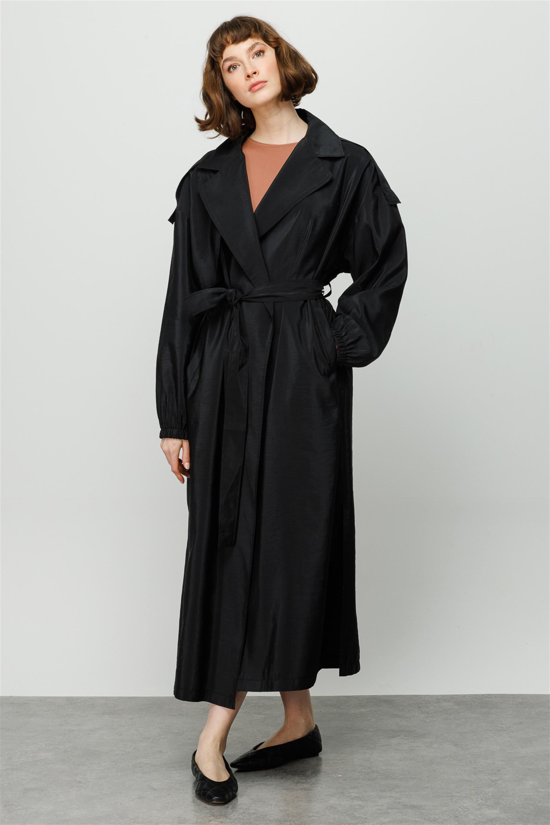 Tafta Loose Hafif İnce Zamansız Trench Kap-Siyah (231562M TAFTA LOOSE-01)