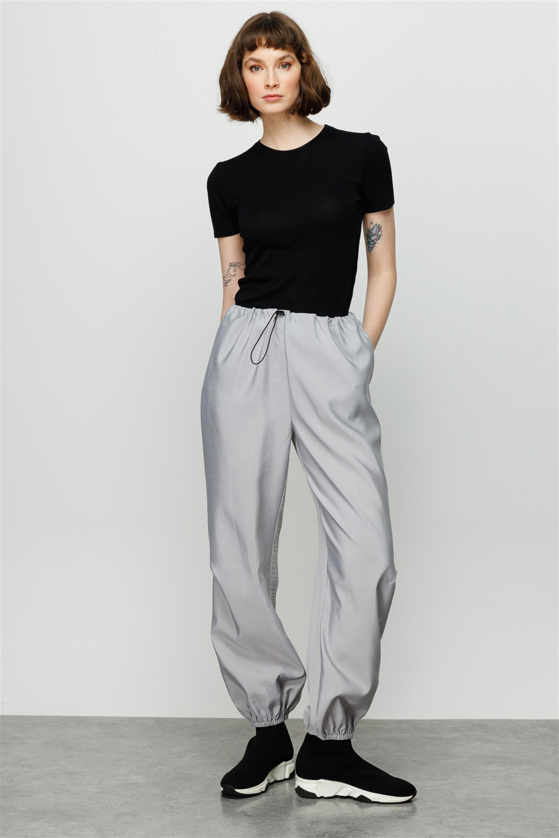 Tafta Ve Nefes Alan Kumaş Lastikli Spor Pantolon-Gri