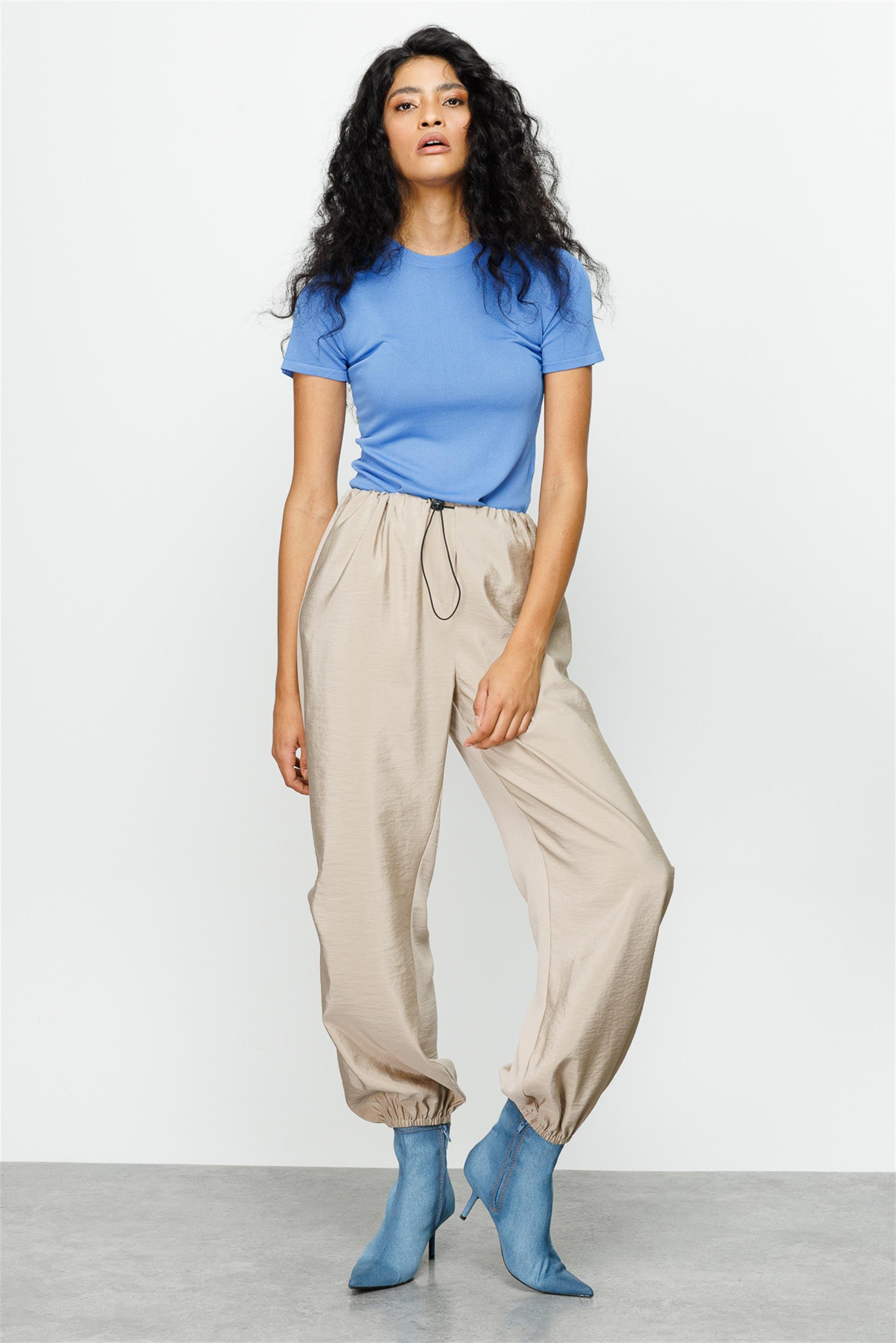Tafta Ve Nefes Alan Kumaş Lastikli Spor Pantolon-Taş (231900M PANTOLON-12)