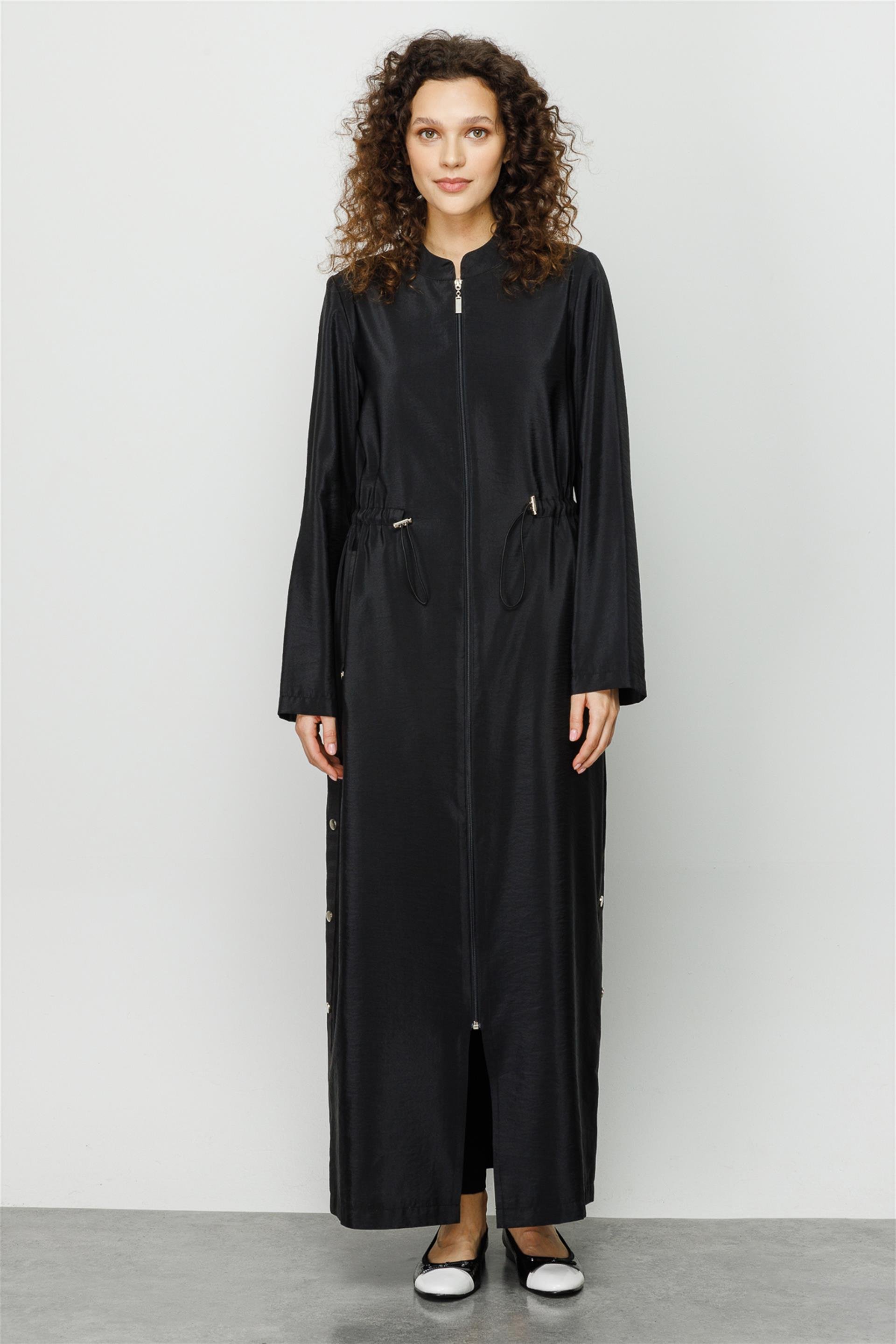 Tafta Yanları Trok Hafif Ve Uzun Trench Kap-Siyah (231542M TROK TAFTA KAP-01)