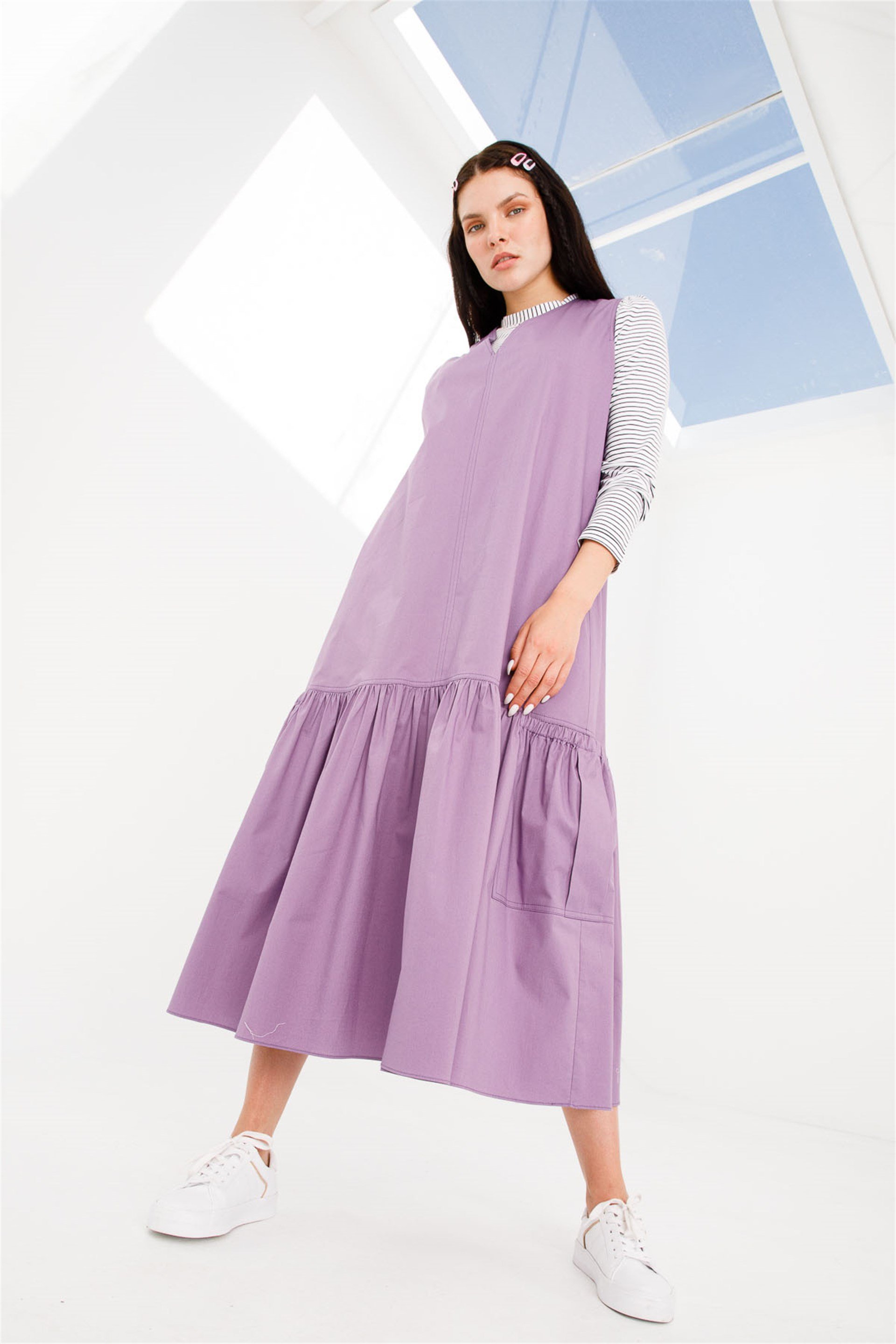 Tam Boy %100 Pamuk (doğal elyaf) Şık ve spor Jile Elbise-Lila