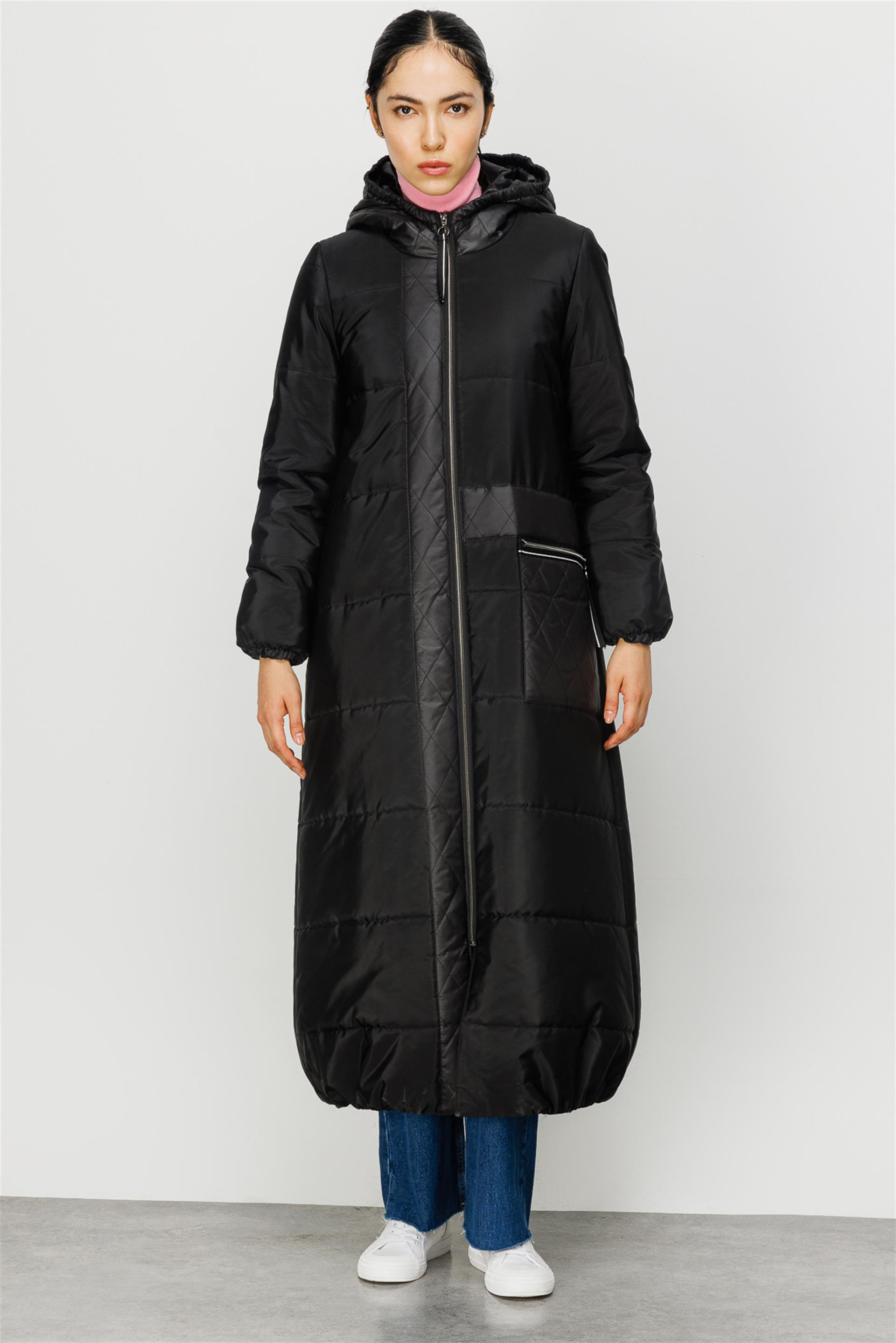 Tona Ton Garni Detaylı Arkası Aksesuar Detaylı Süper Manto Kaban-Siyah (232587M KABAN-01)