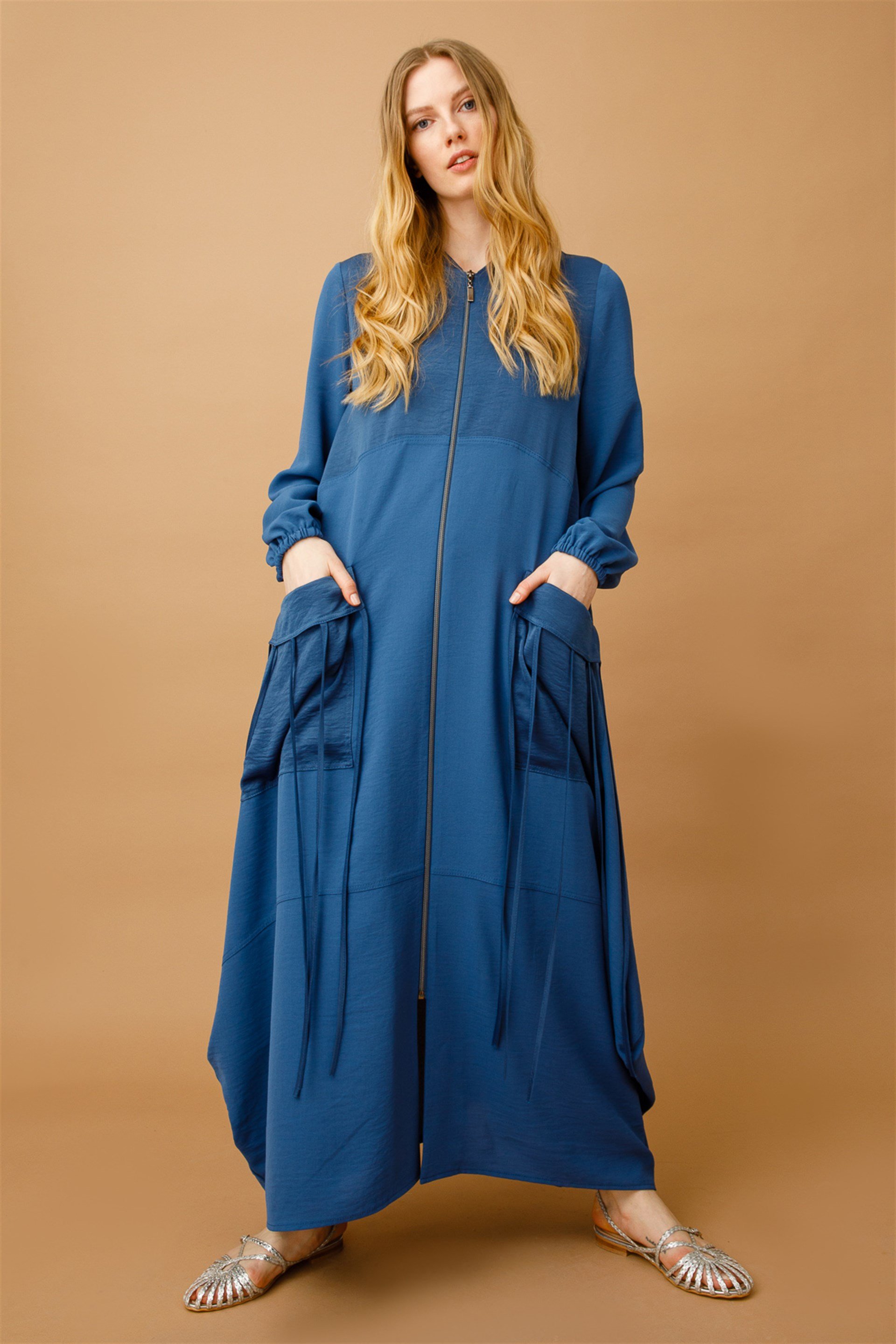 Tona Ton Garnilli Cep Detaylı Zor Kırışan Nefes Alan Kumaştan Spor Kap-İndigo (221582M PARDESÜ-44)