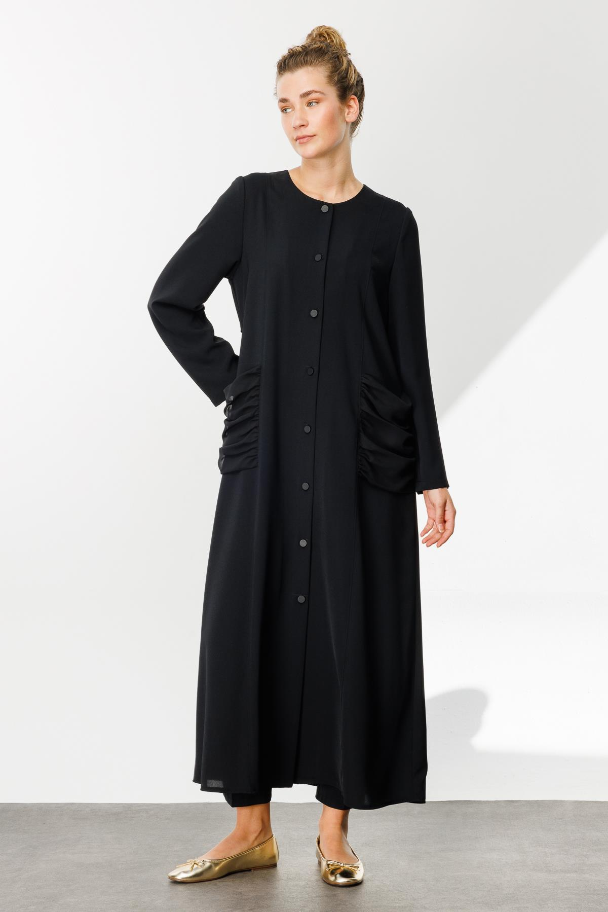 Tulle Drape Detaylı Zarif ve Spor Kap-Siyah (241844M FERACE-01)