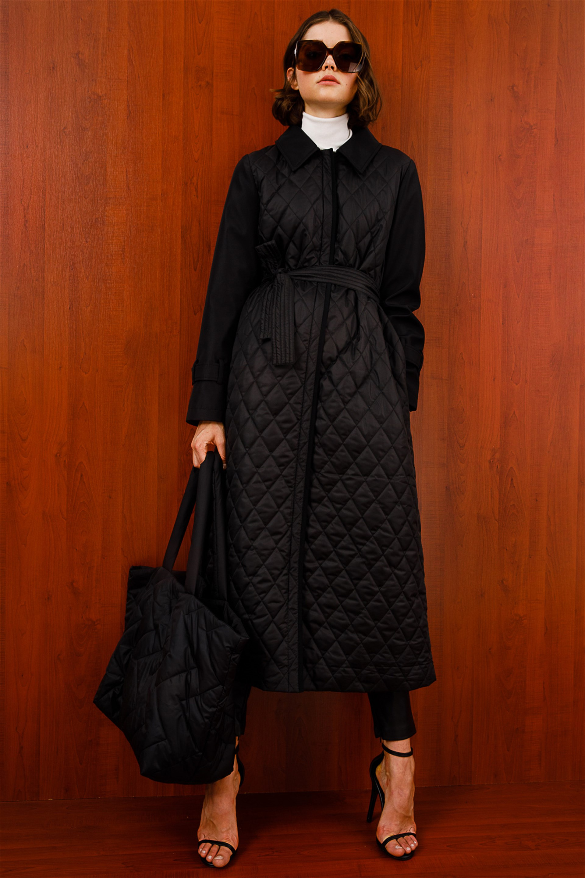 Tüm Zamanlar İçin Tasarlanmış Düz ve Kapitone Dolgulu Şık Spor Manto-Siyah