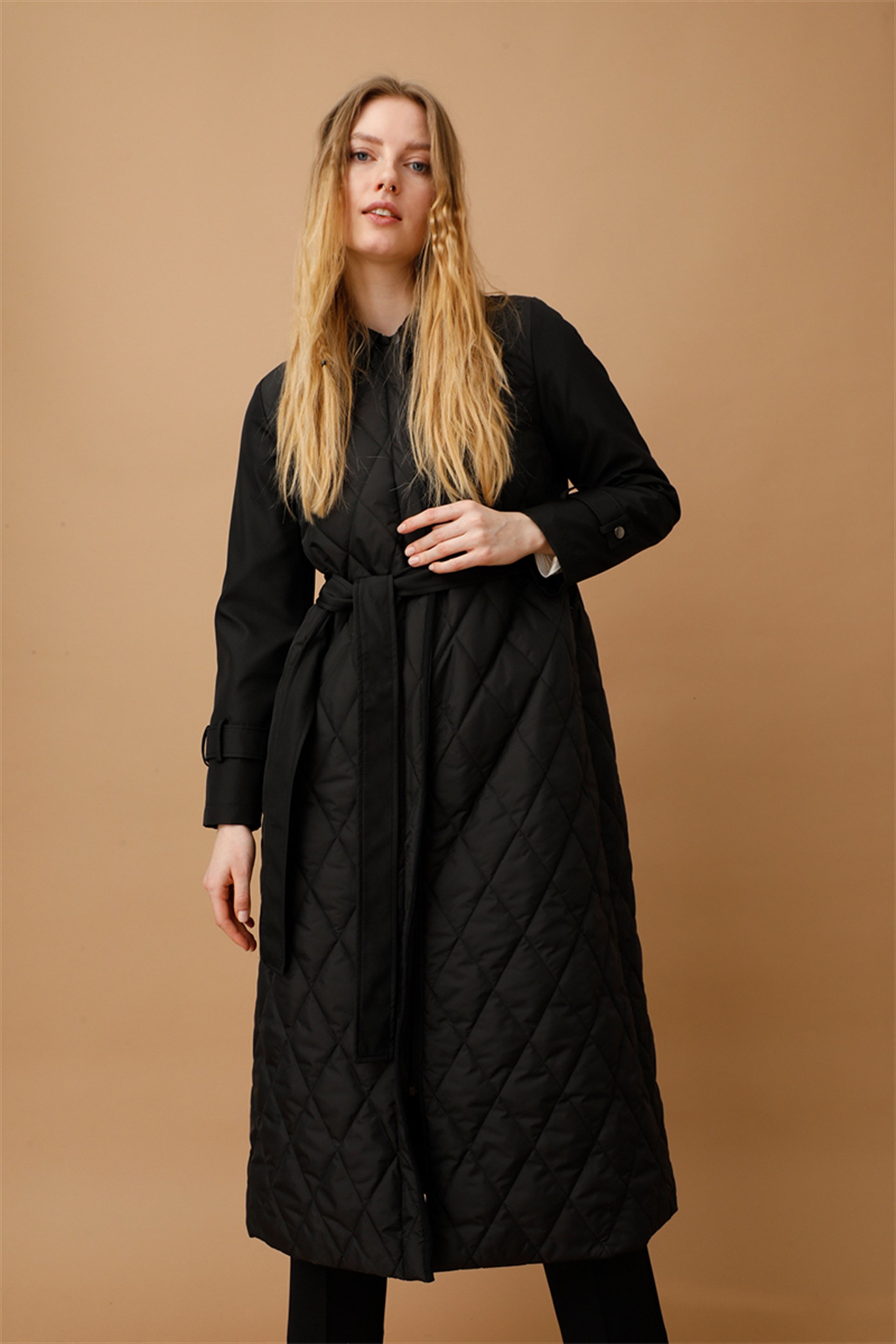 Tüm Zamanlar İçin Tasarlanmış Düz ve Kapitone Kalın Dolgulu Şık Spor Manto-Siyah (212572M KABAN-01)