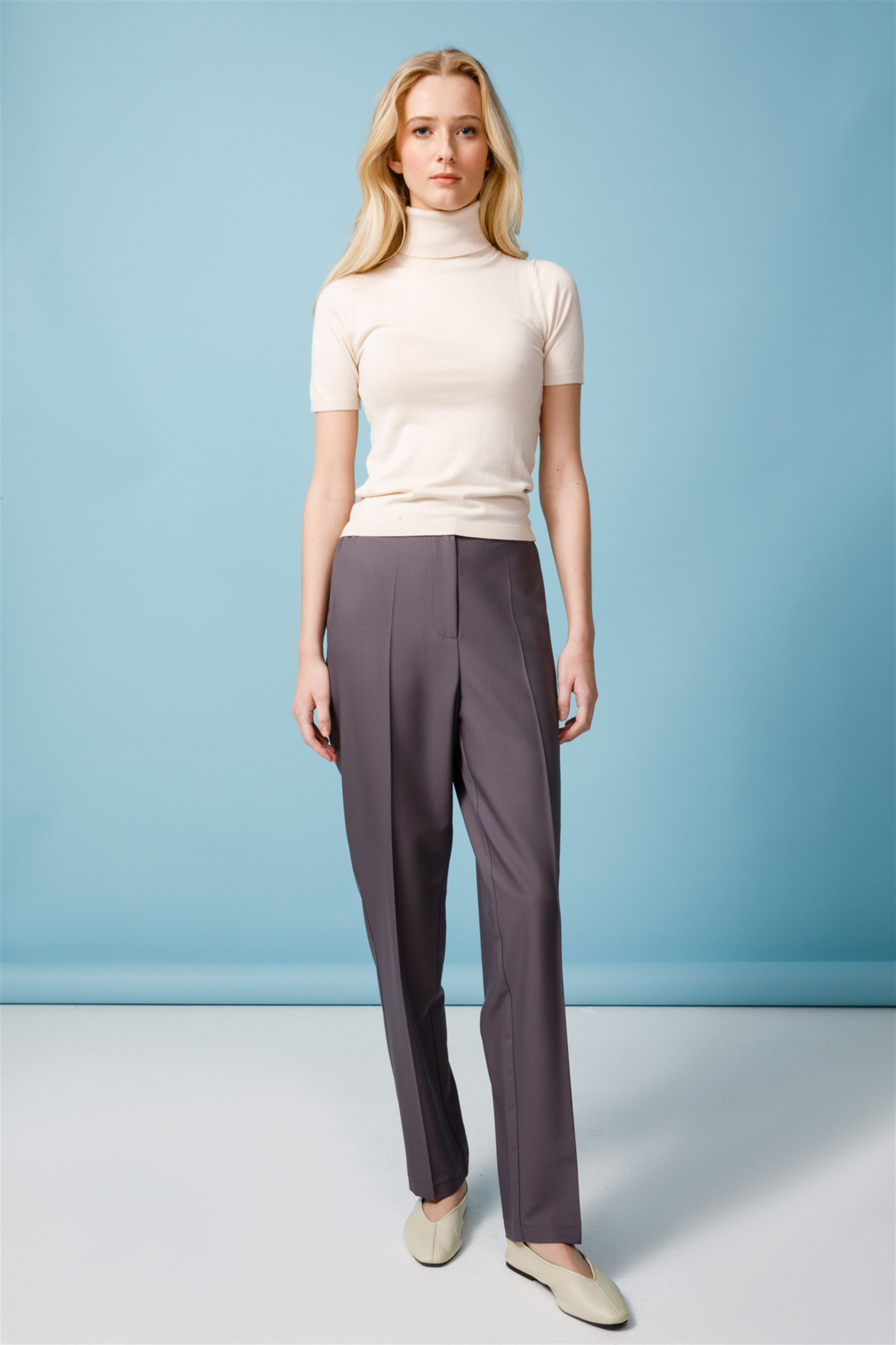 Tüm Zamanlar İçin Uygun Hafif ve Zor Kırışan Kumaştan Beli Lastikli Pantolon-Gri