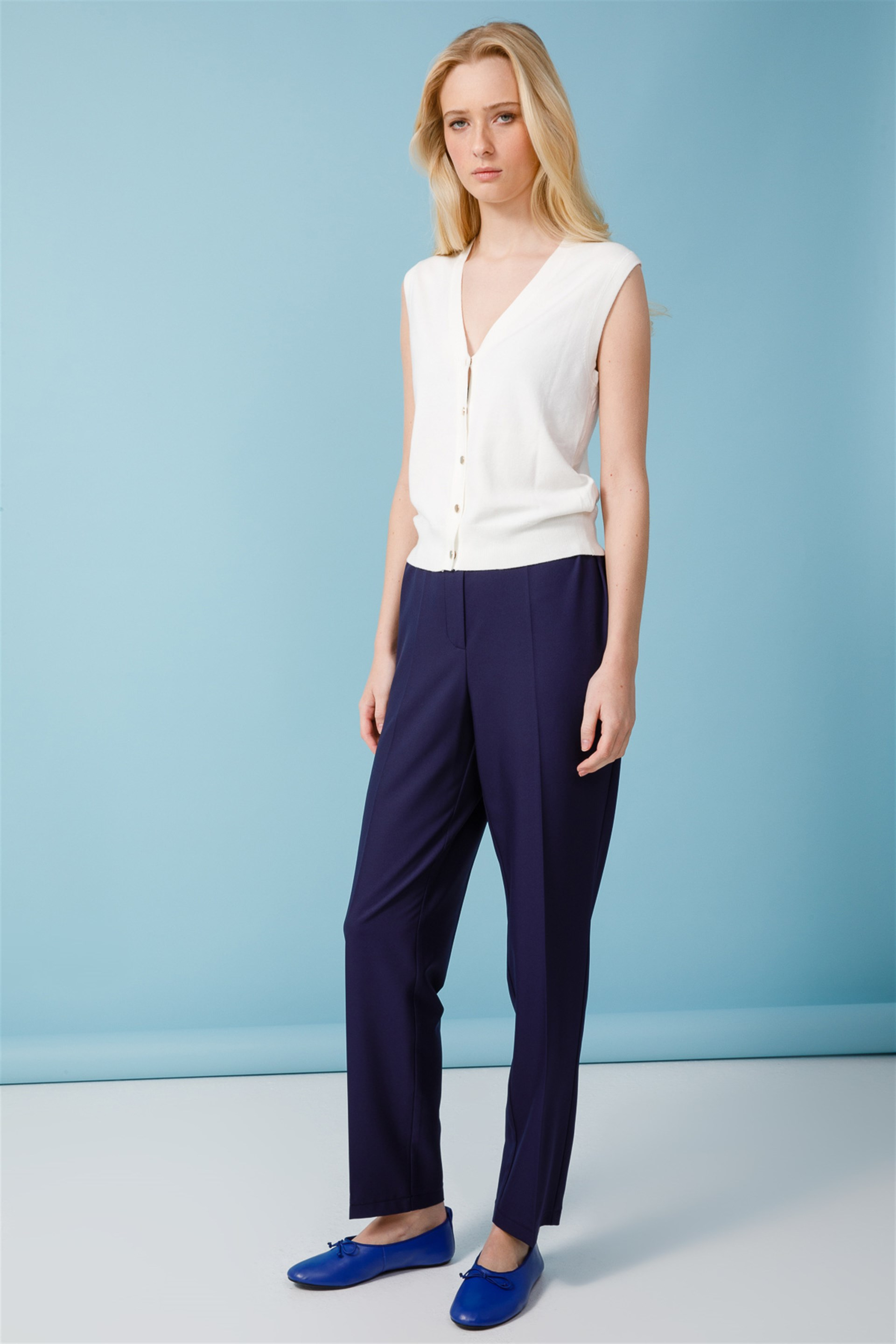 Tüm Zamanlar İçin Uygun Hafif ve Zor Kırışan Kumaştan Beli Lastikli Pantolon-Laci
