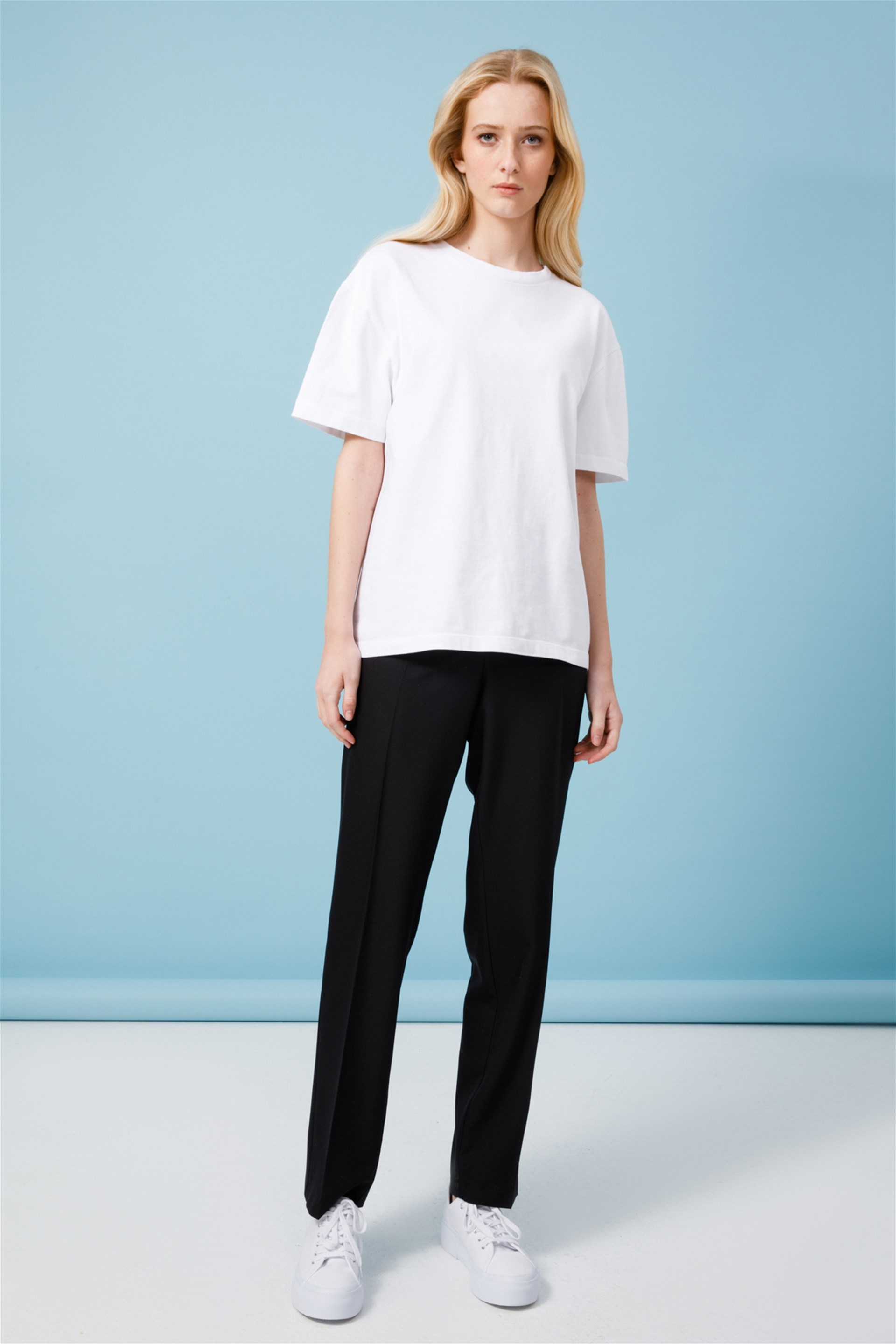 Tüm Zamanlar İçin Uygun Hafif ve Zor Kırışan Kumaştan Beli Lastikli Pantolon-Siyah