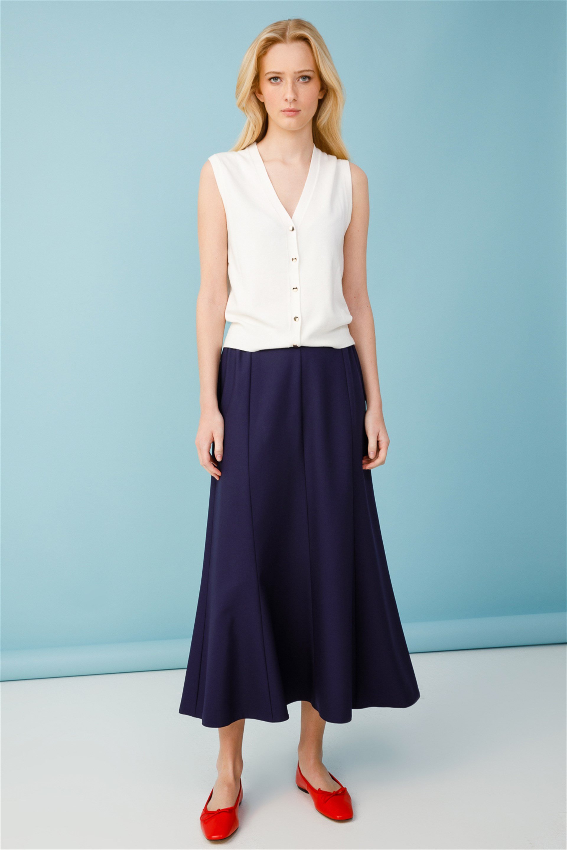 Tüm Zamanlar İçin Uygun Hafif ve Zor Kırışan Kumaştan Beli Lastikli Tam Boy Parçalı Etek-Laci (221205M ETEK-04)