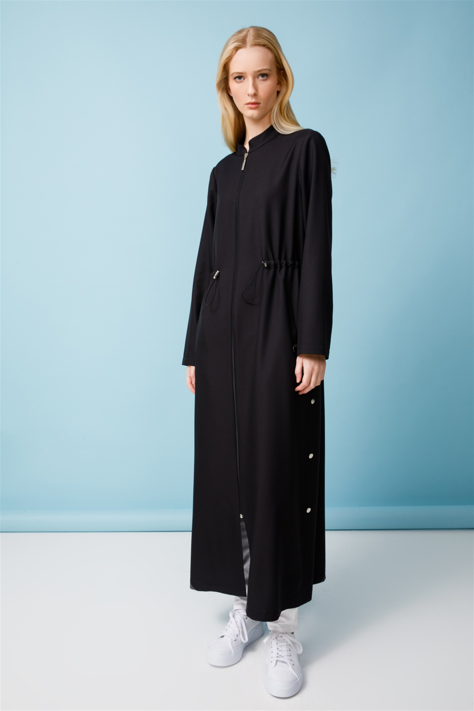 Tüm Zamanlar İçin Uygun Hafif ve Zor Kırışan Kumaştan Spor Tam Boy Kap-Siyah (221533M PARDESÜ-01)
