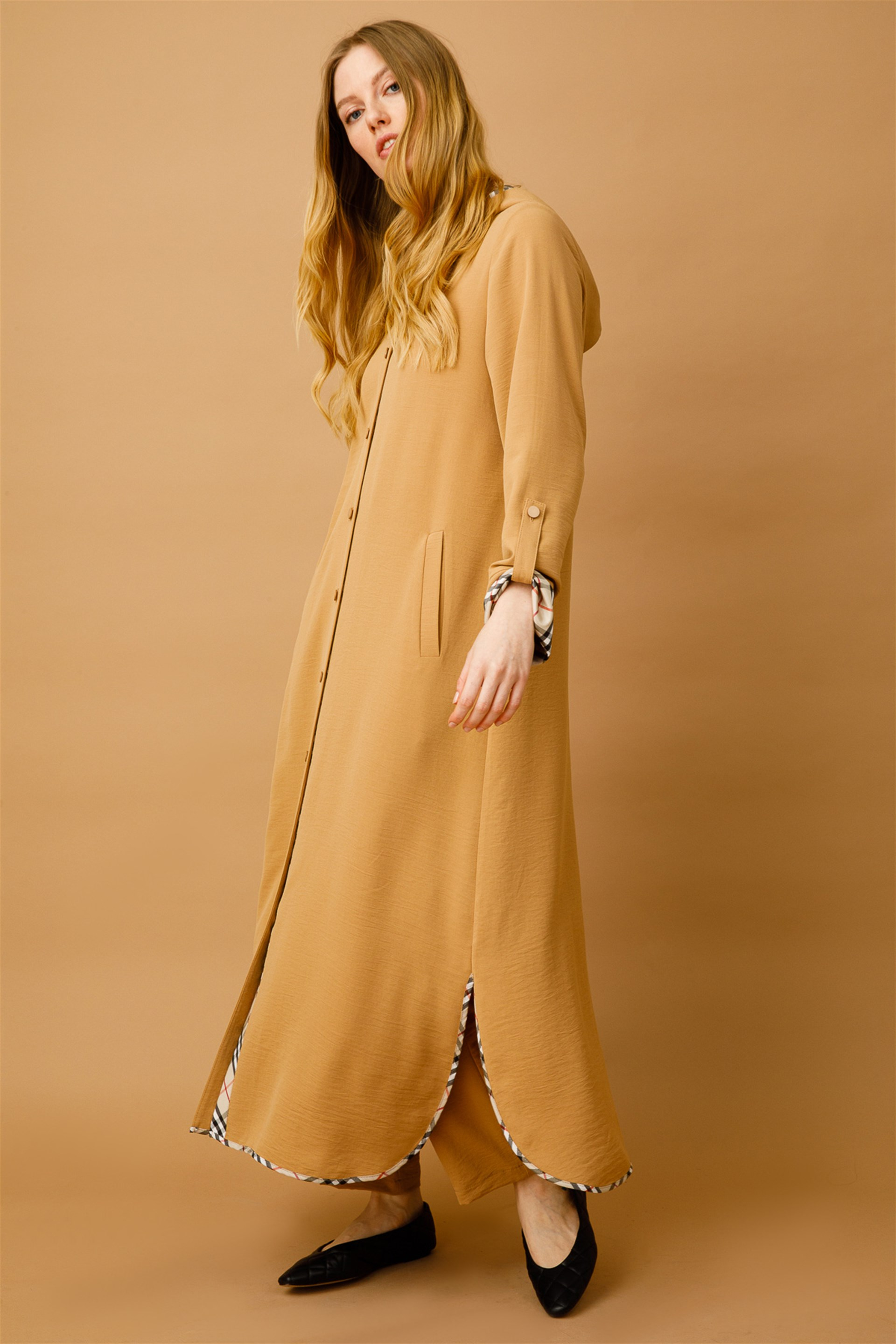 Unique Detaylar ile Garnilenmiş Tam Boy Spor Kap-Camel (221510M PARDESÜ-08)