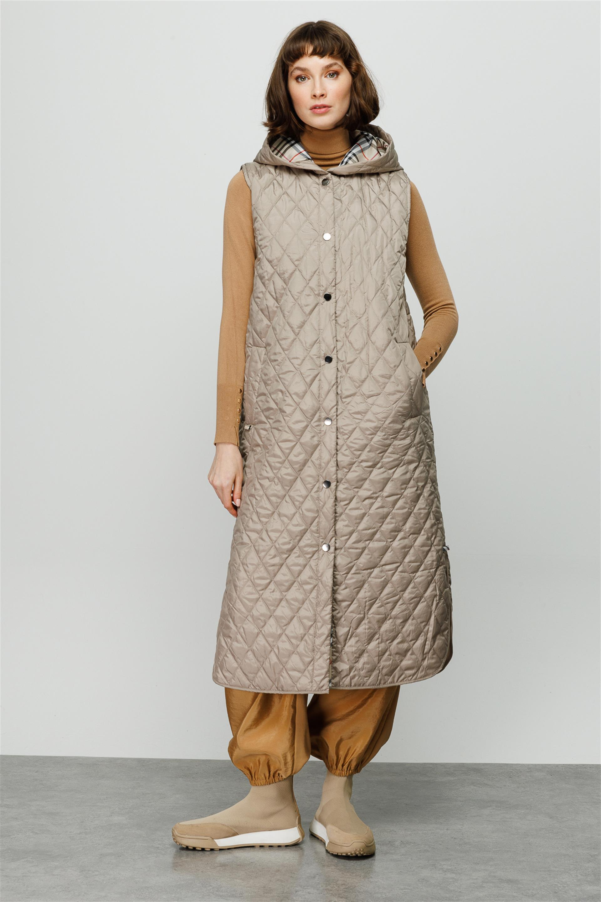 Unique Garni Detaylı Kapitone Uzun Tüm Zamanlar İçin Spor Yelek-Taş (231704M BRBY YELEK-12)