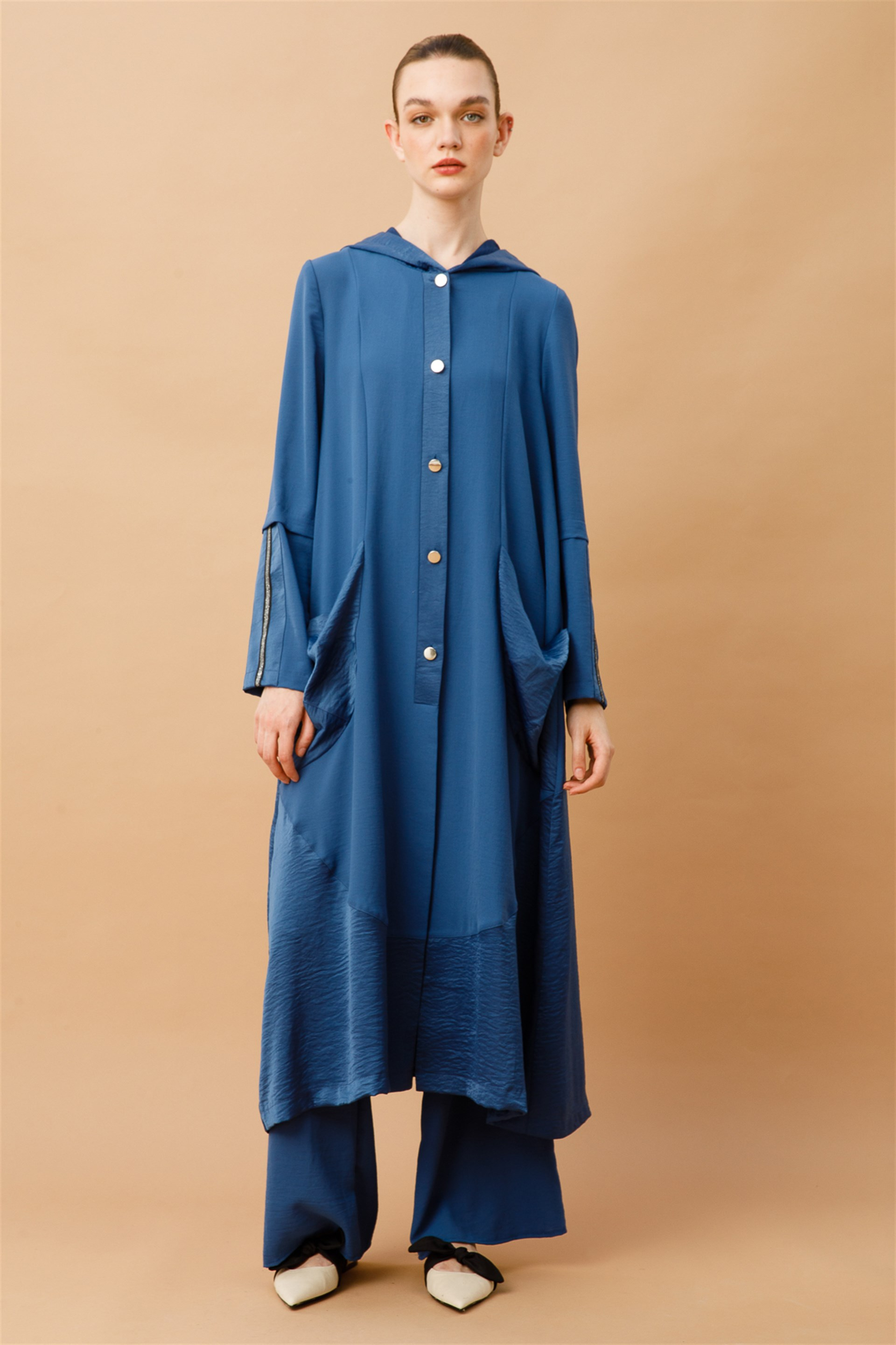 Uyumlu Tonlarla Garnilenmiş Sade Gündelik Spor Kap-İndigo (221899M PARDESÜ-44)