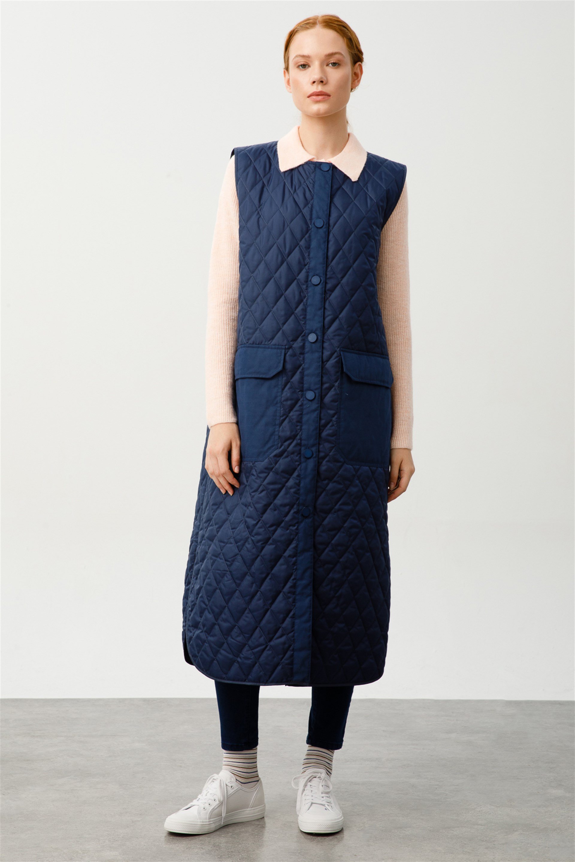 Uzun Helene Garni Detaylı Timeless Kapitone Yelek-Laci