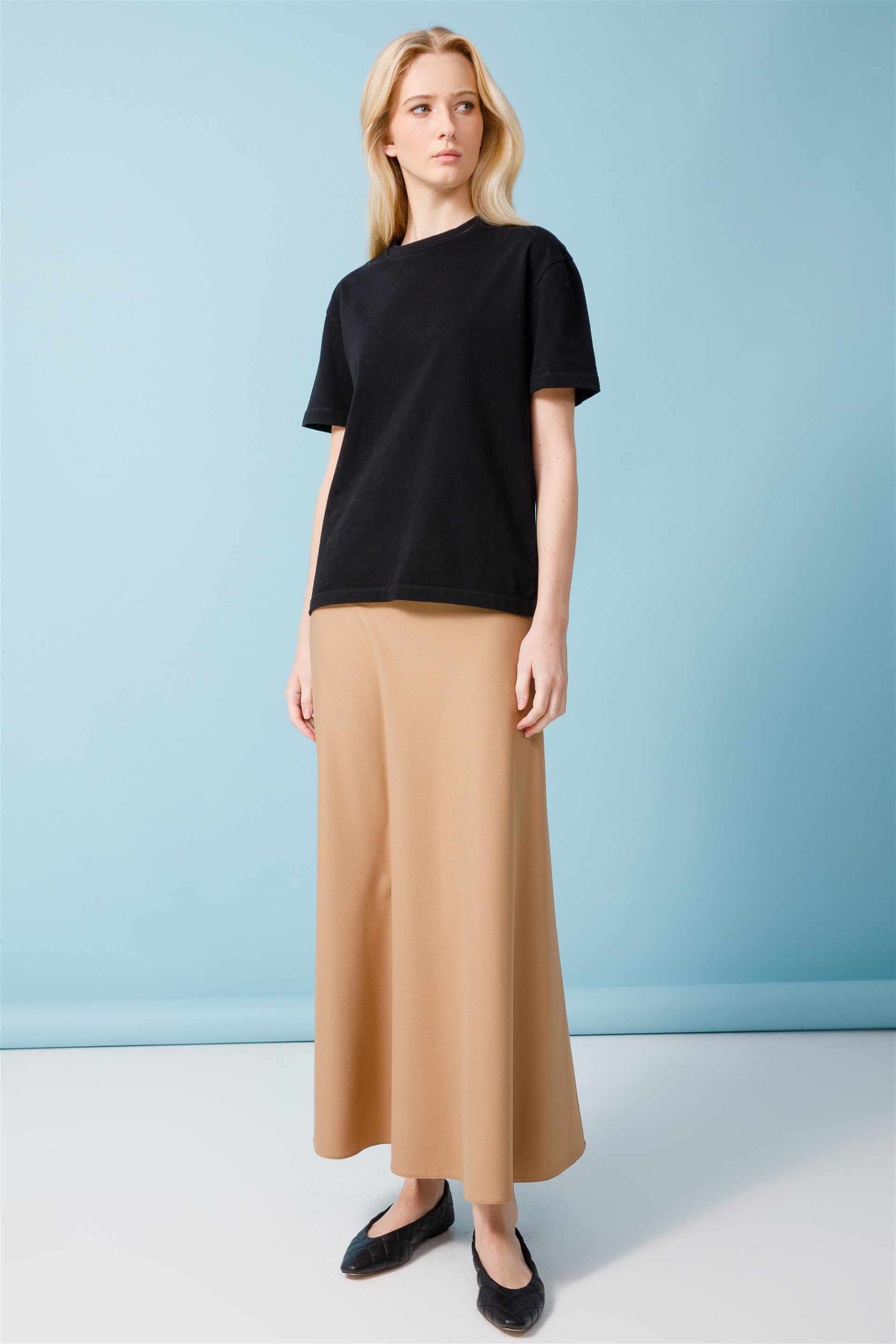 Verev Dökümlü Zor Kırışan Kumaştan Spor ve Tüm Zamanlar İçin Etek-Camel (221201M ETEK-08)