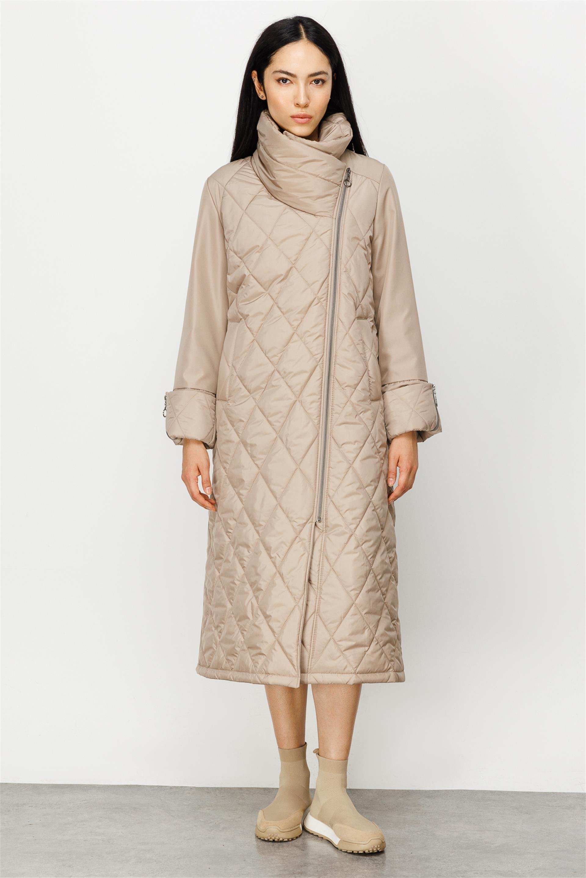 Vip Garni Kumaşlı Tüm Beden Dolgulu Kapitone Spor Manto Kaban-Taş (232530M KABAN-12)