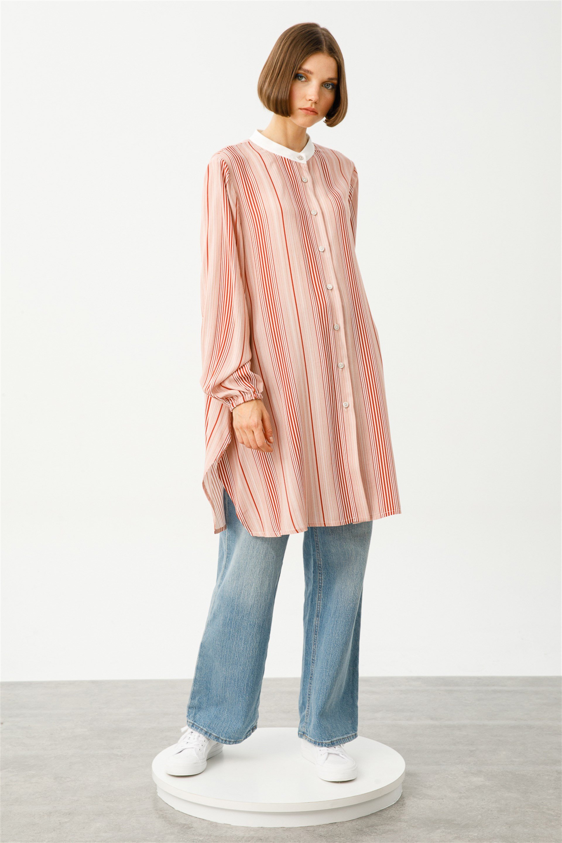 Viskon Doğal Kumaştan Rahat Kesim Tunik Kap-KİREMİT (221431M TUNİK-39)