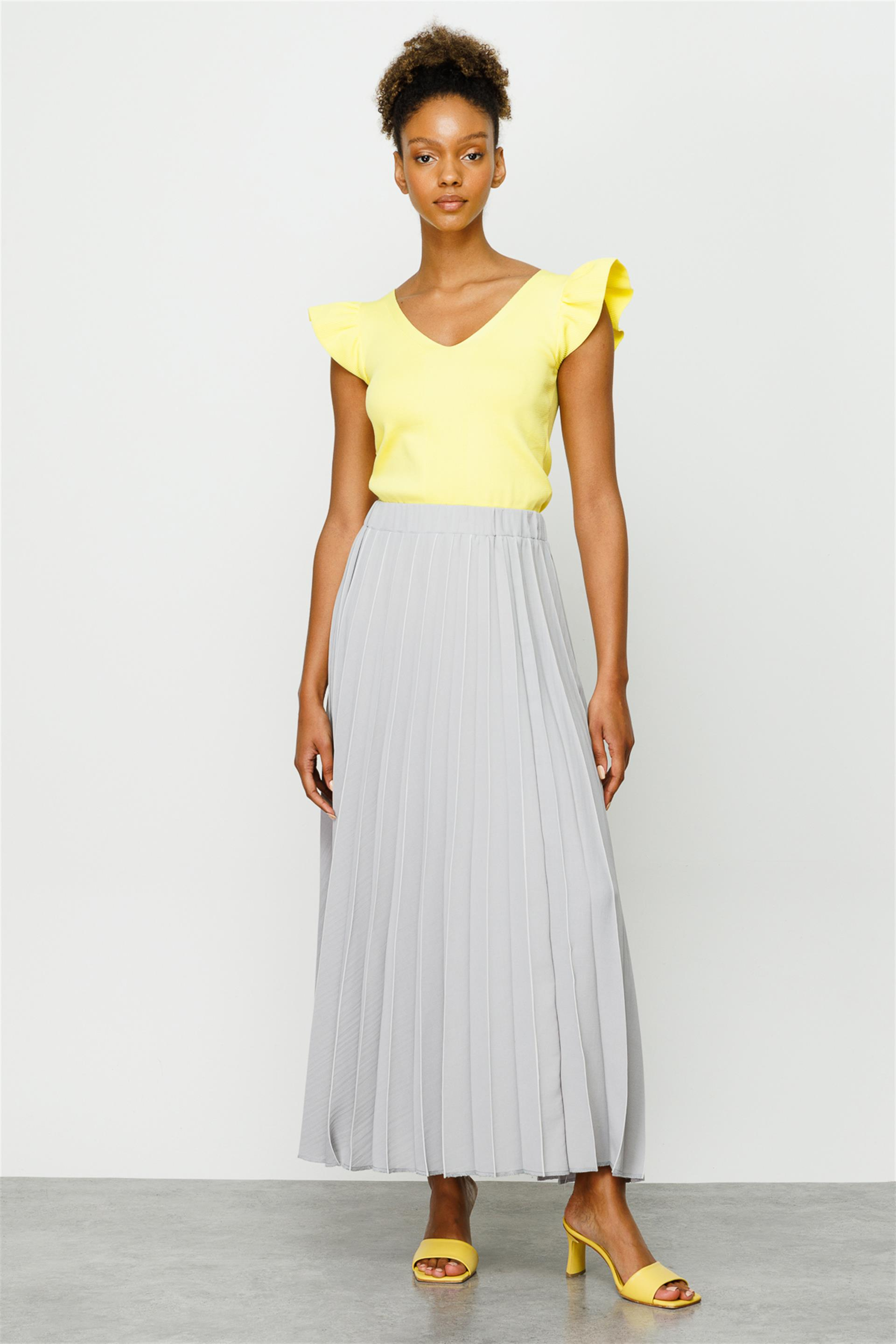 Vouge Özel Pilise Detaylı Beli Lastikli Etek-Gri