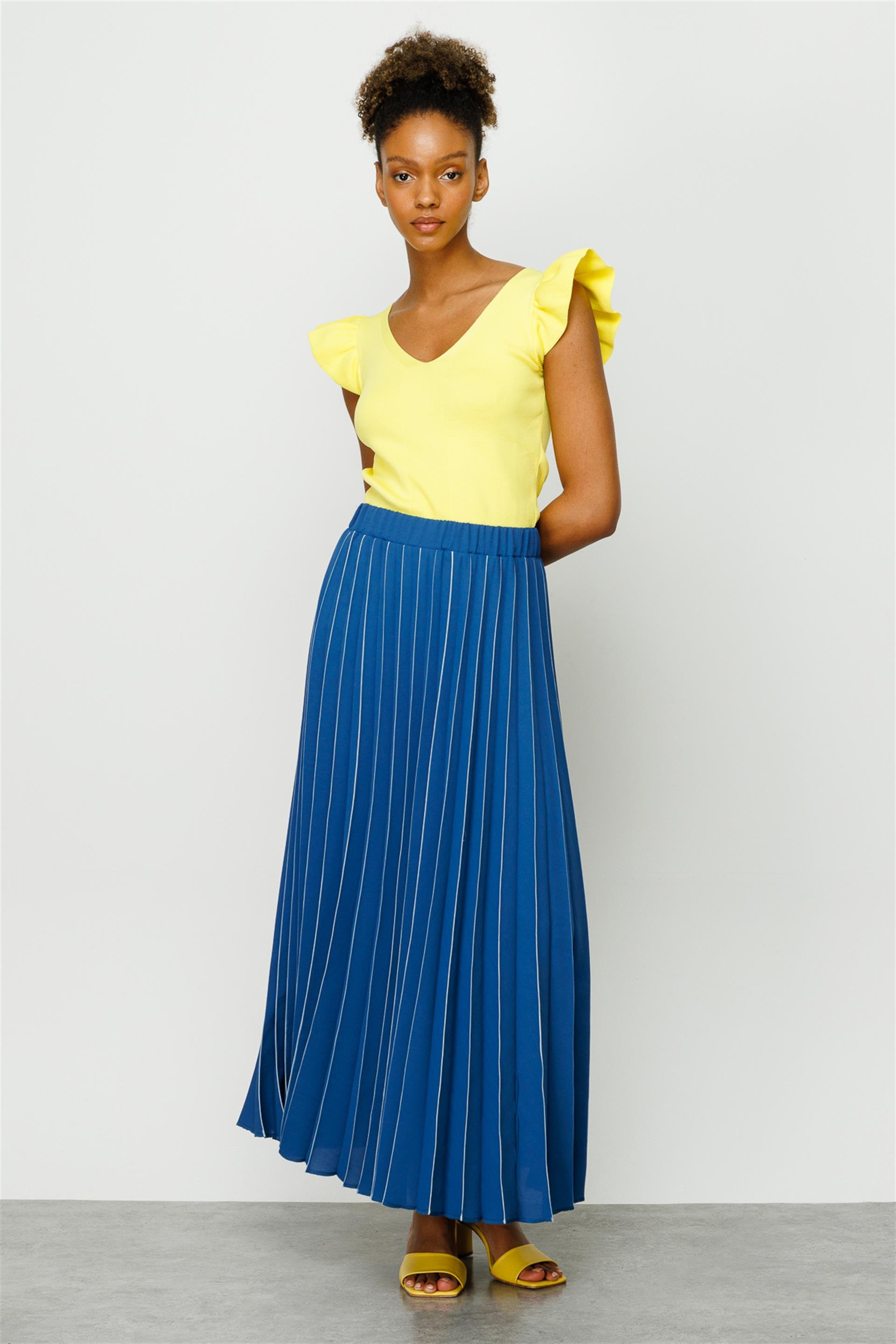 Vouge Özel Pilise Detaylı Beli Lastikli Etek-İndigo (231228M ETEK-44)