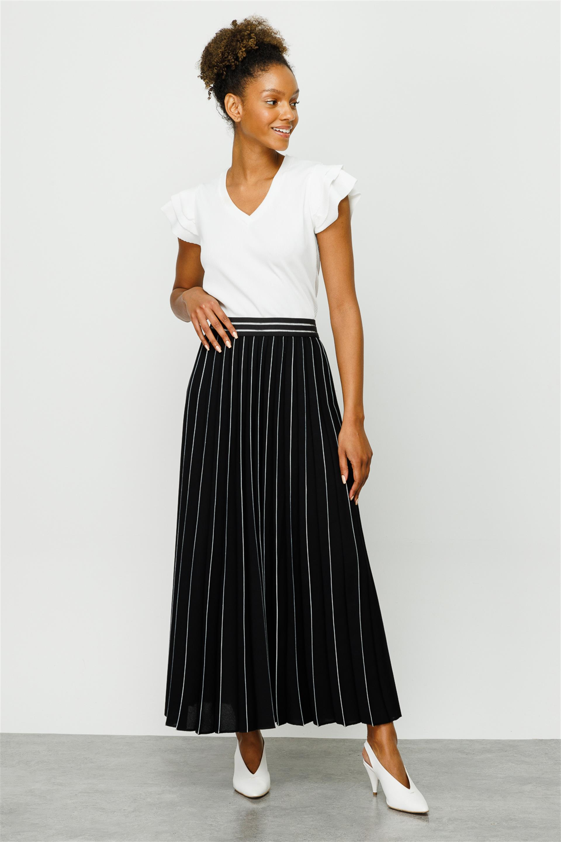 Vouge Özel Pilise Detaylı Beli Lastikli Etek-Siyah