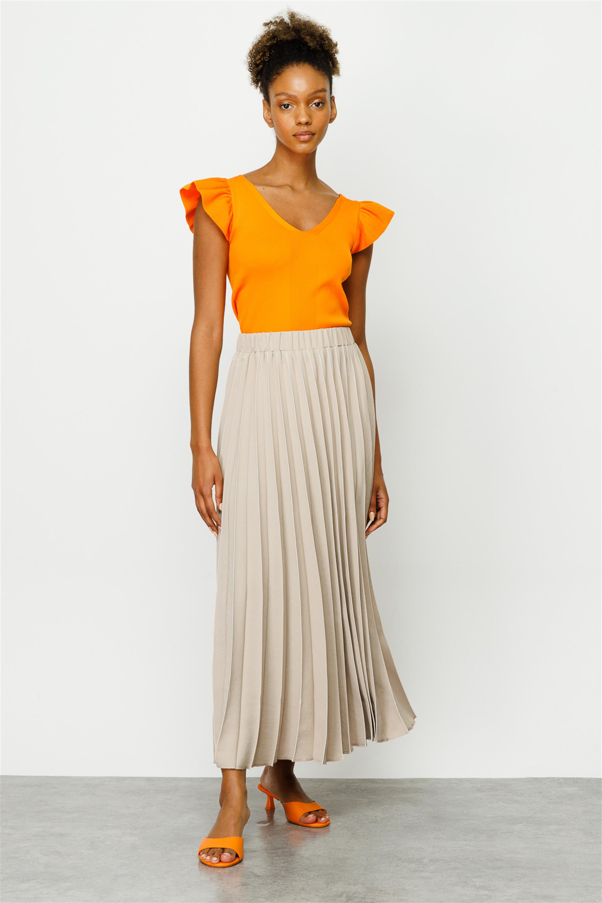Vouge Özel Pilise Detaylı Beli Lastikli Etek-Taş (231228M ETEK-12)