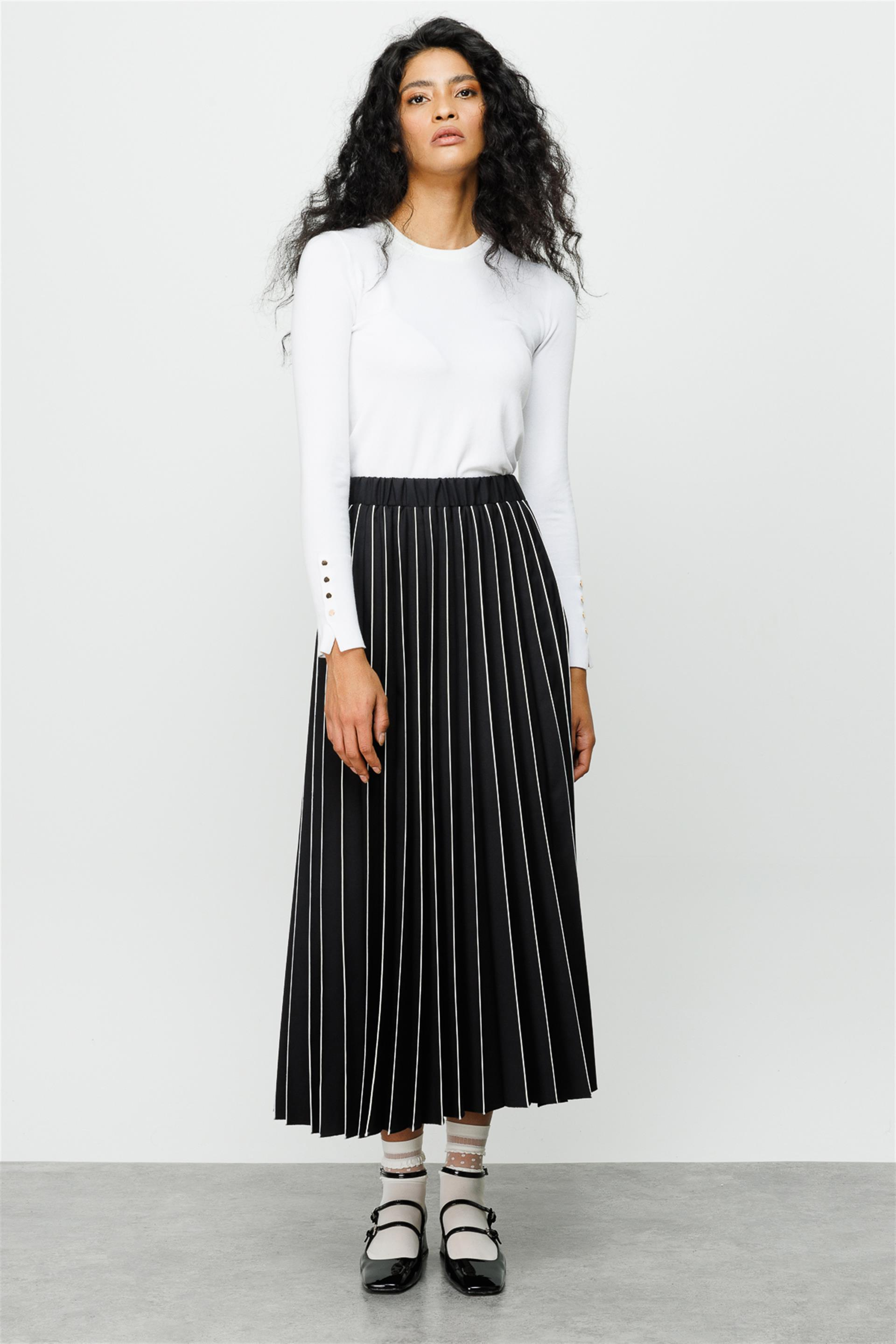 Vouge Özel Pilise Detaylı Lastikli Etek-Siyah (231206M ETEK-01)