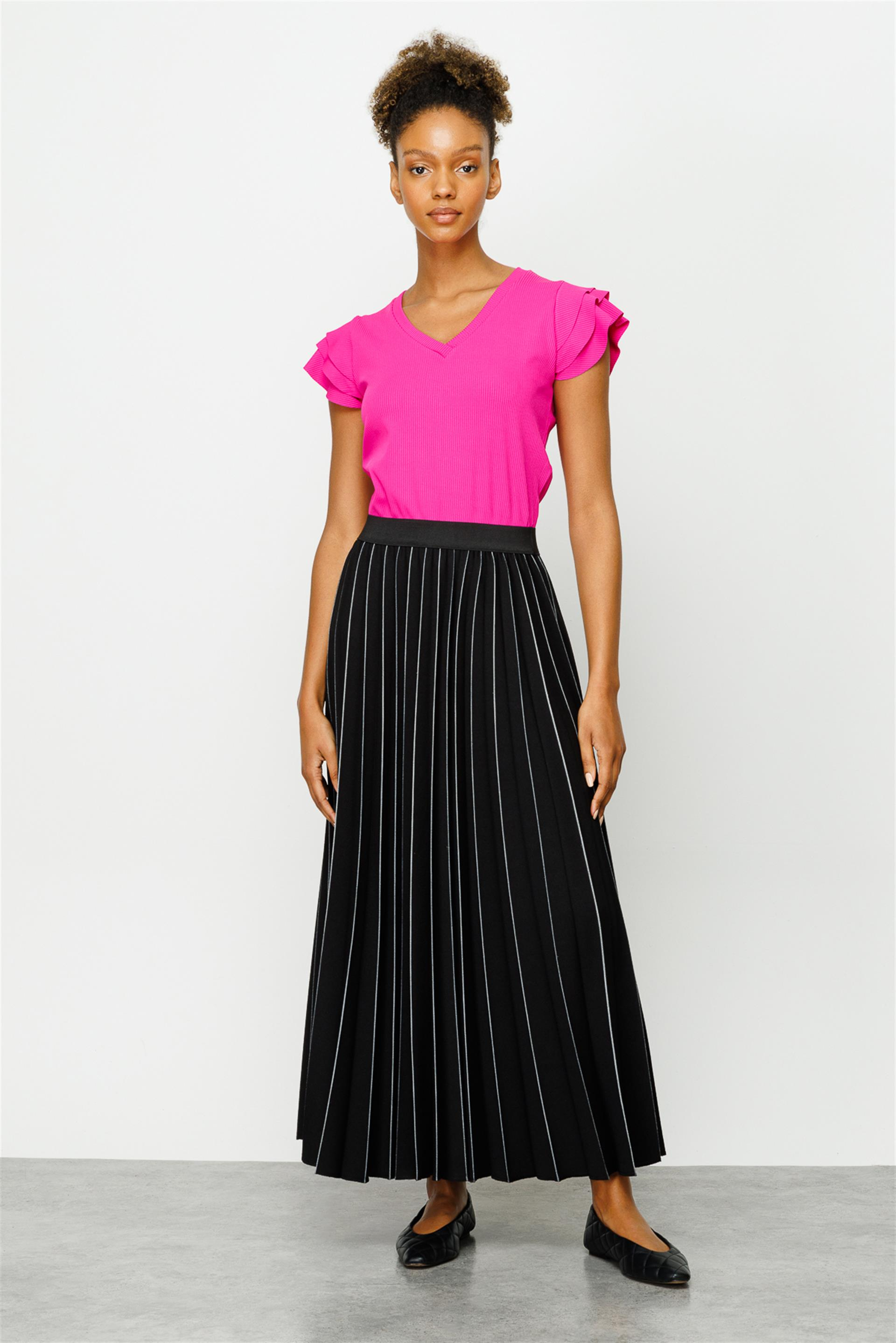 Vouge Özel Pilise Detylı Beli Lastikli Etek-Siyah (231226M ETEK-01)