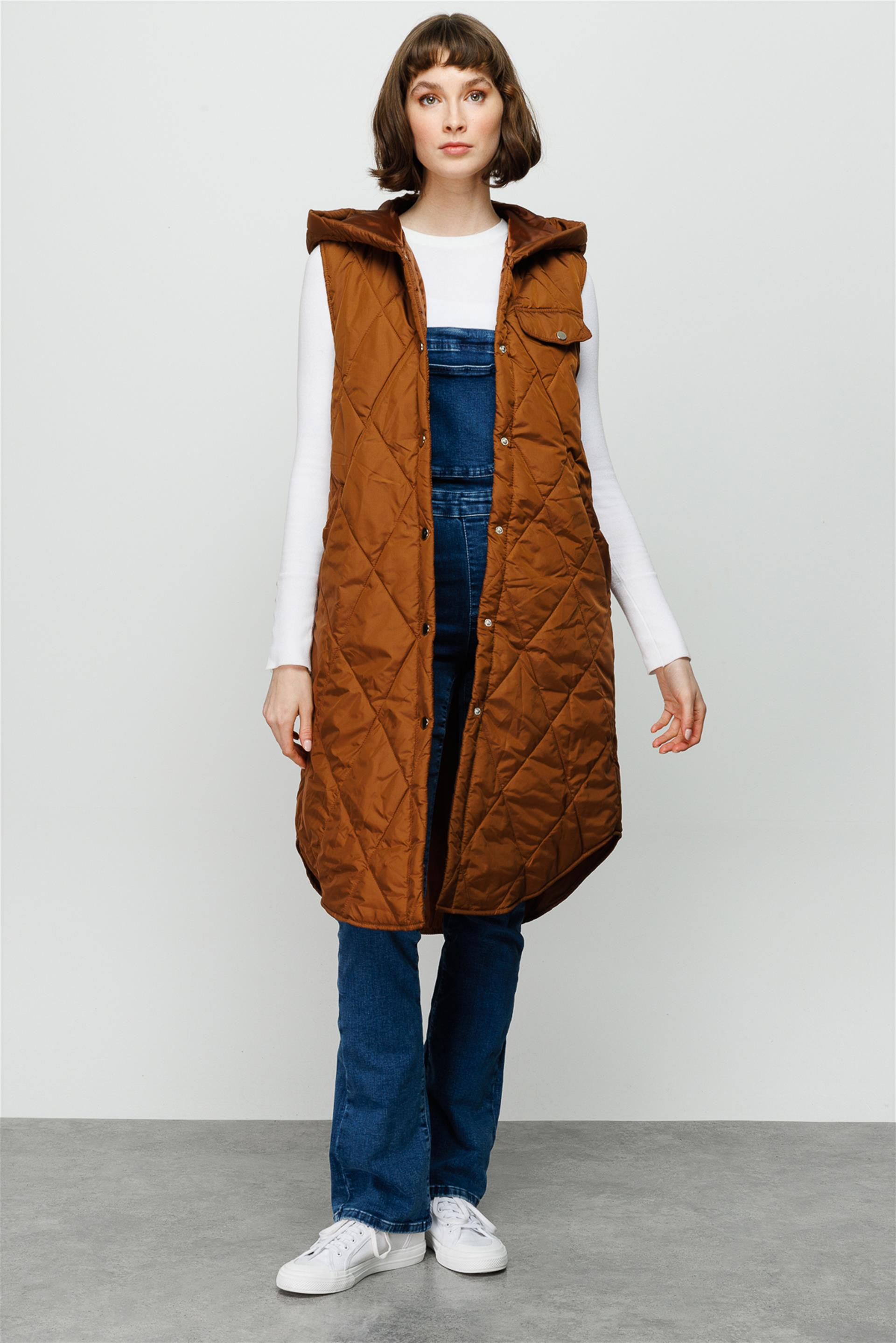 X Desen İşleme Kapitoneli Baharlık Yelek-Fındık