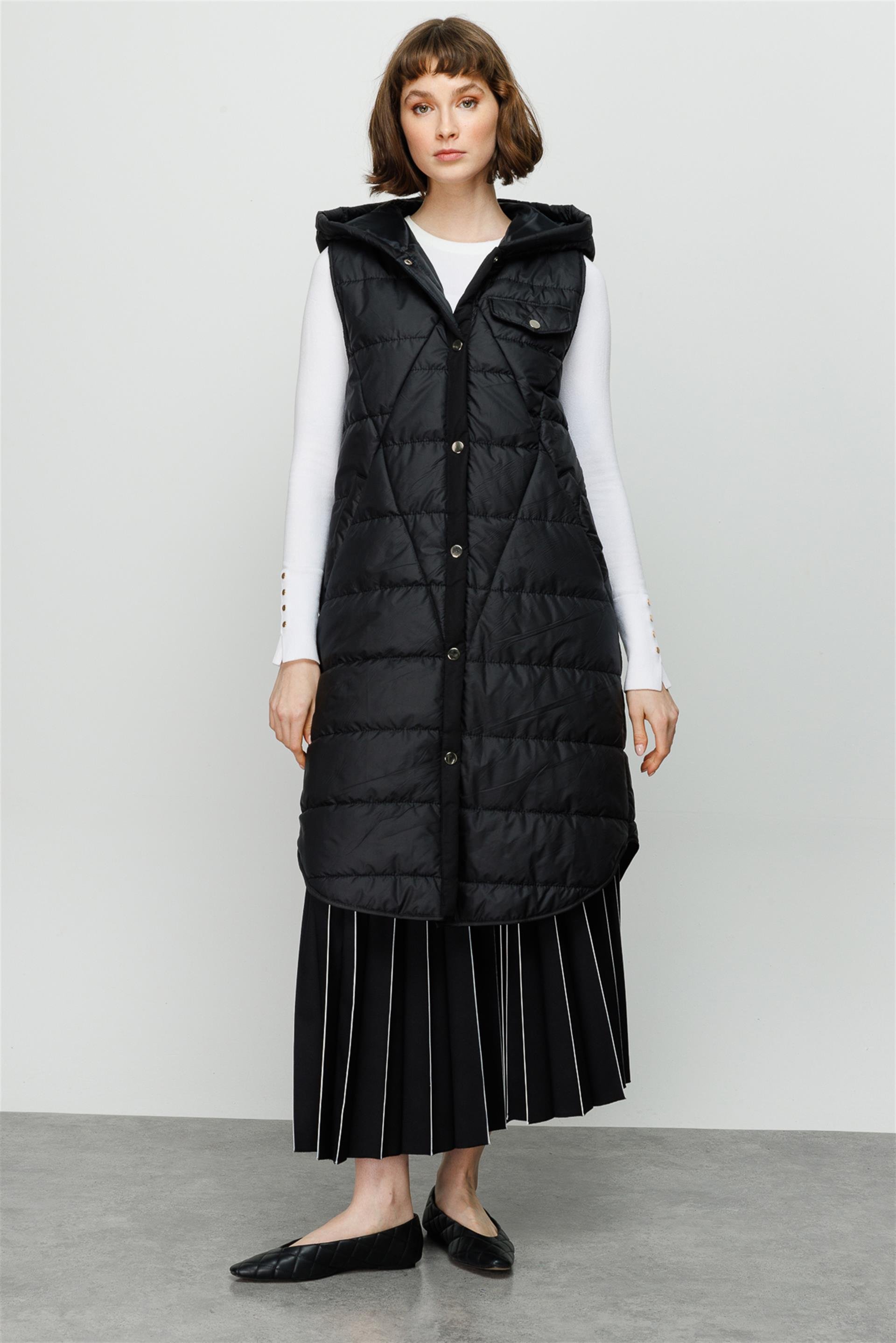 X Desen İşleme Kapitoneli Baharlık Yelek-Siyah