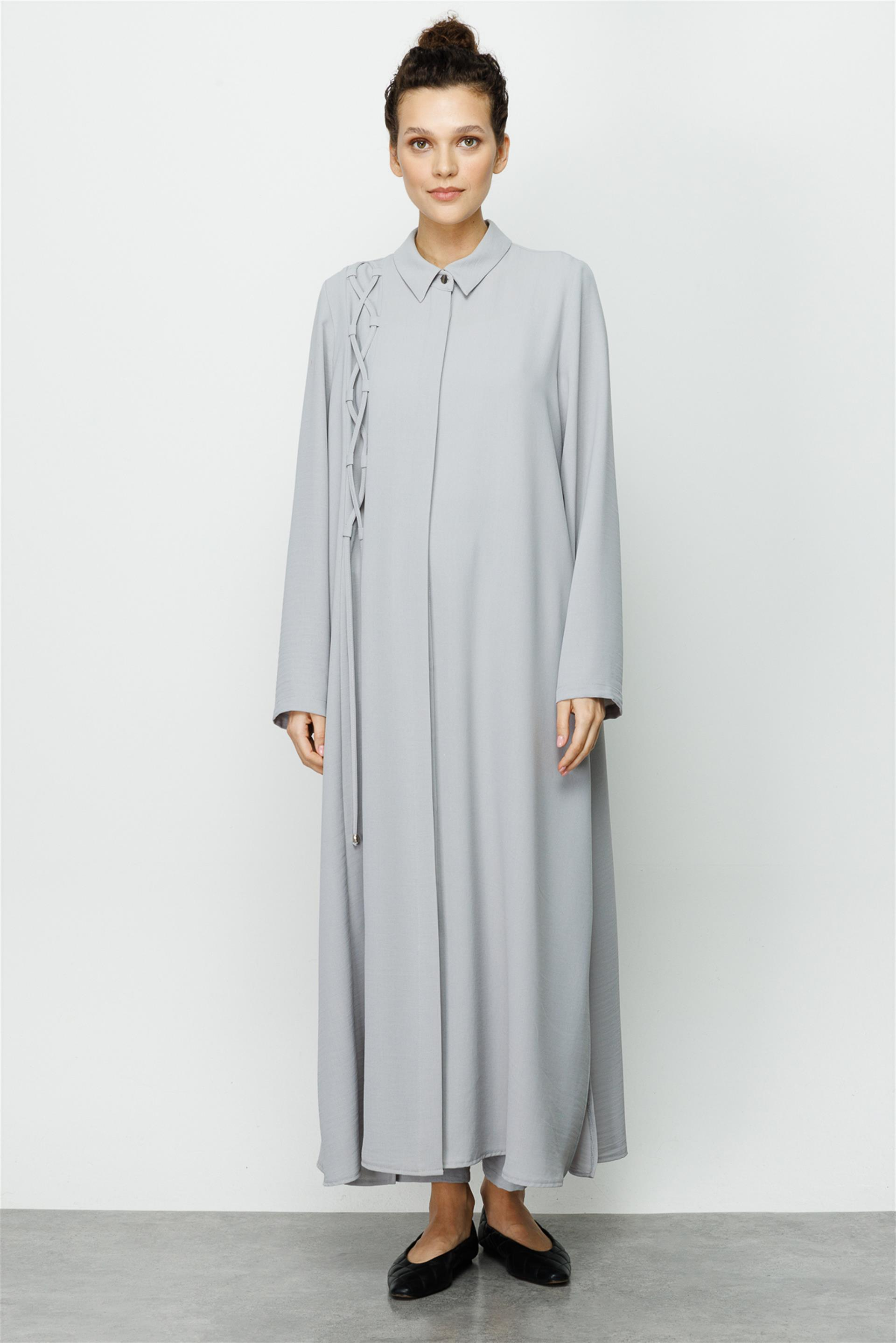 X Elişi Garni Detaylı Nef. Zor Kırışan Kumaştan Kap-Gri (231505M X ELİŞİ KAP-18)