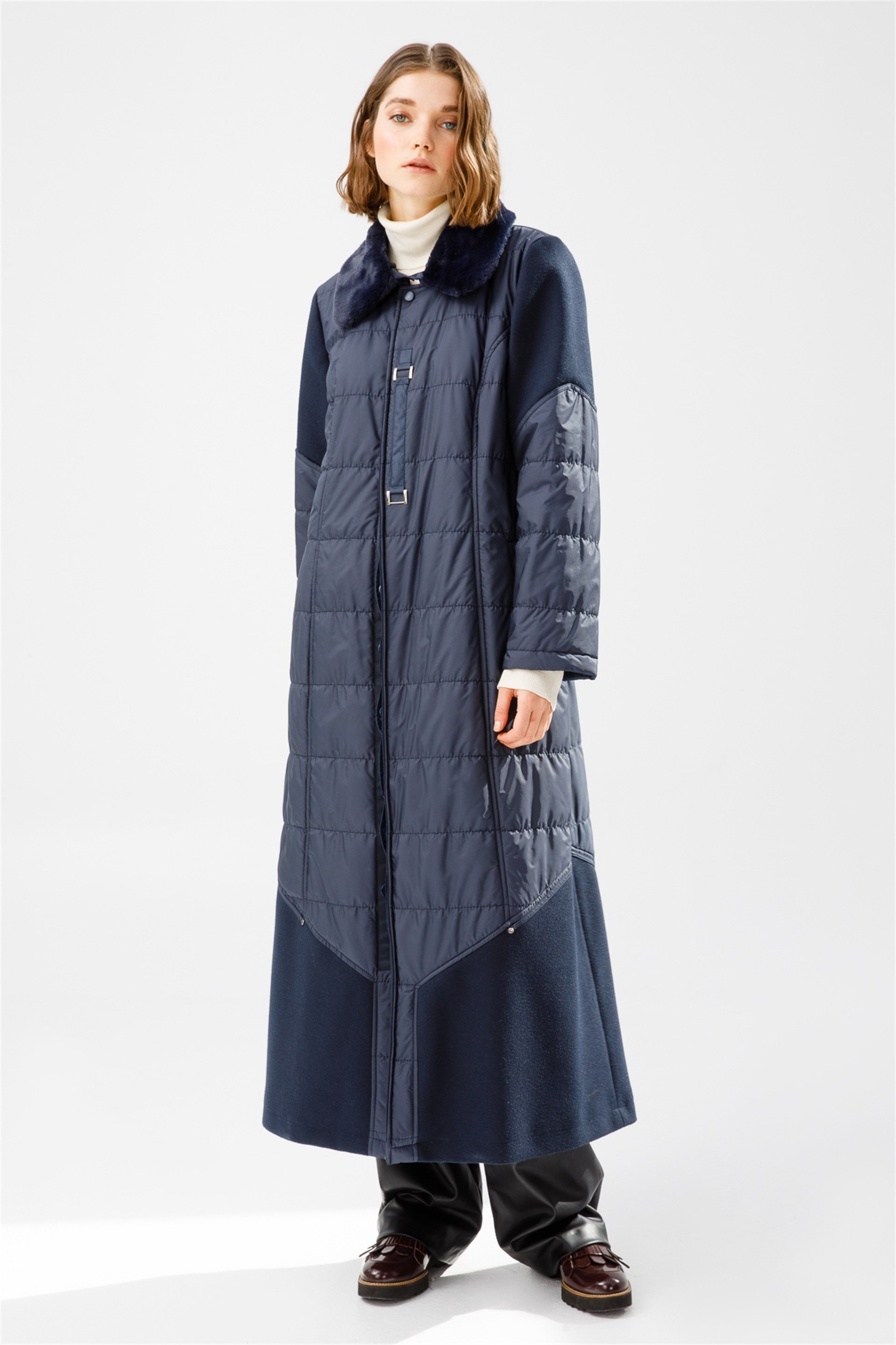Yakası Çıkabilir Kürklü Kapitone Dikişli Kaşe Kumaş Mixli Tam Boy Şişme Mont-Laci (212813M KABAN-04)