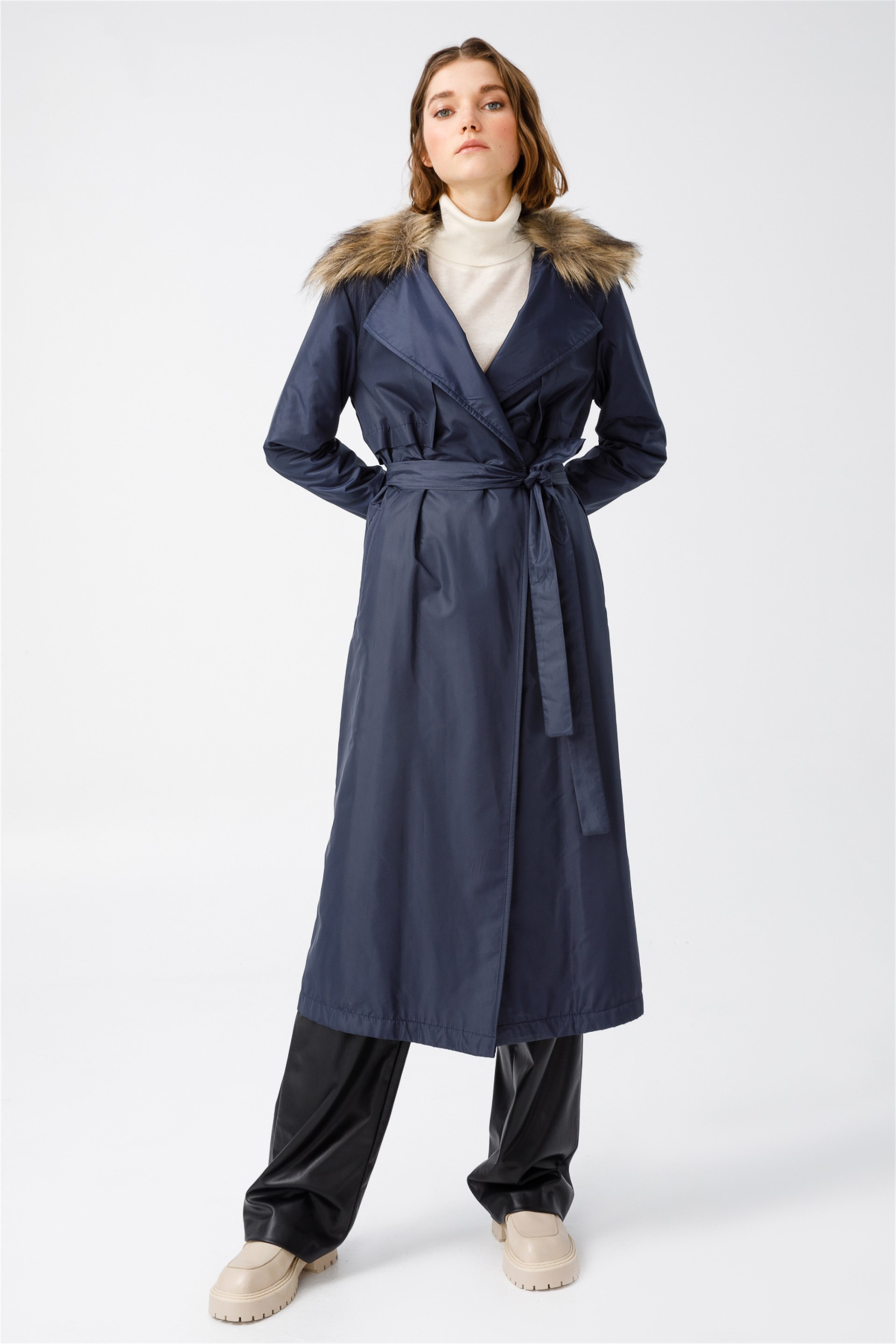 Yakası Kürklü İç Astarı Peluşlu Belden Bağlamalı Spor Kap-Laci (202561M KABAN-04)