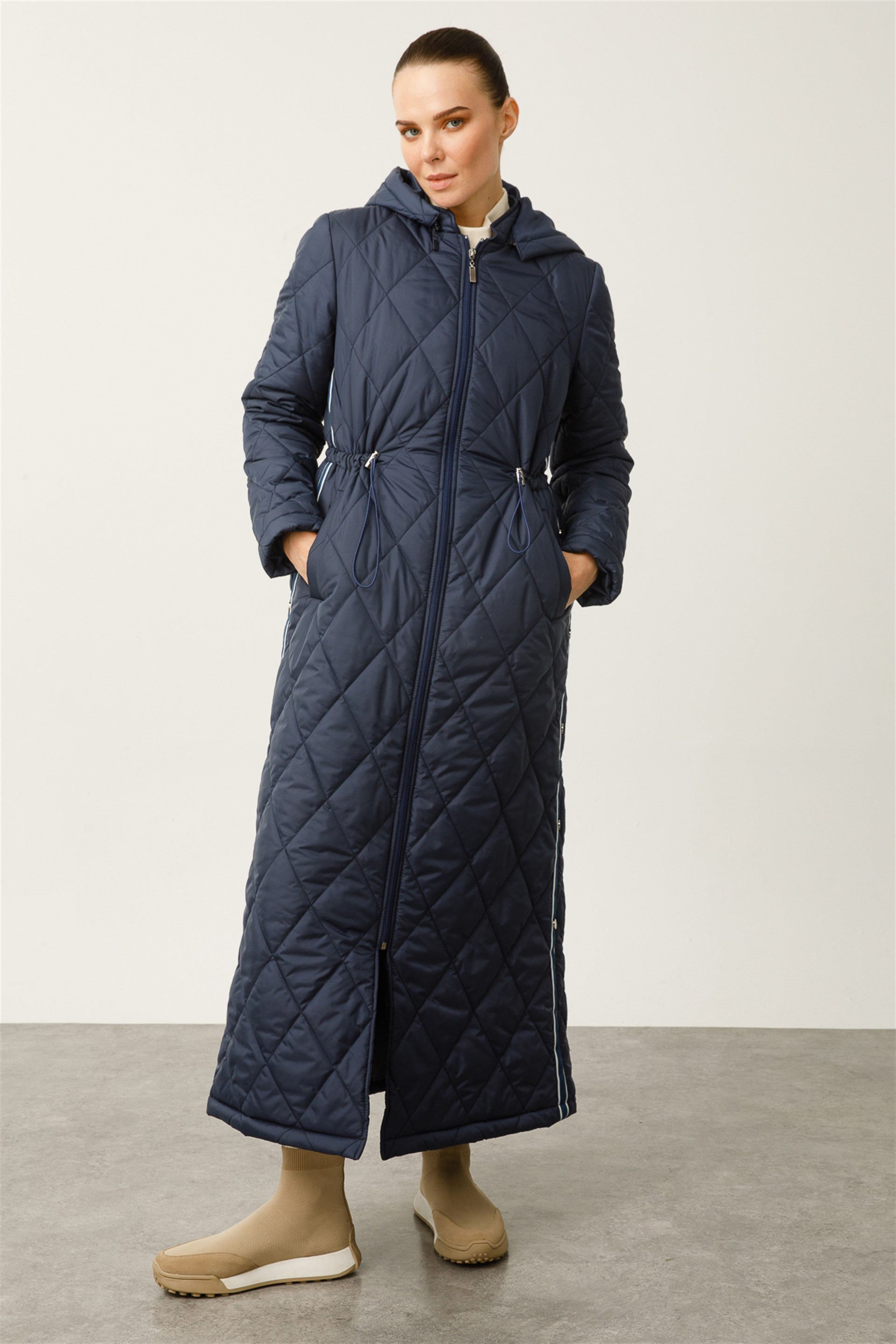 Yanı Çizgi ve Aksesuar Detaylı Extra Spor Kapitone Manto-Laci (222540M KABAN-04)