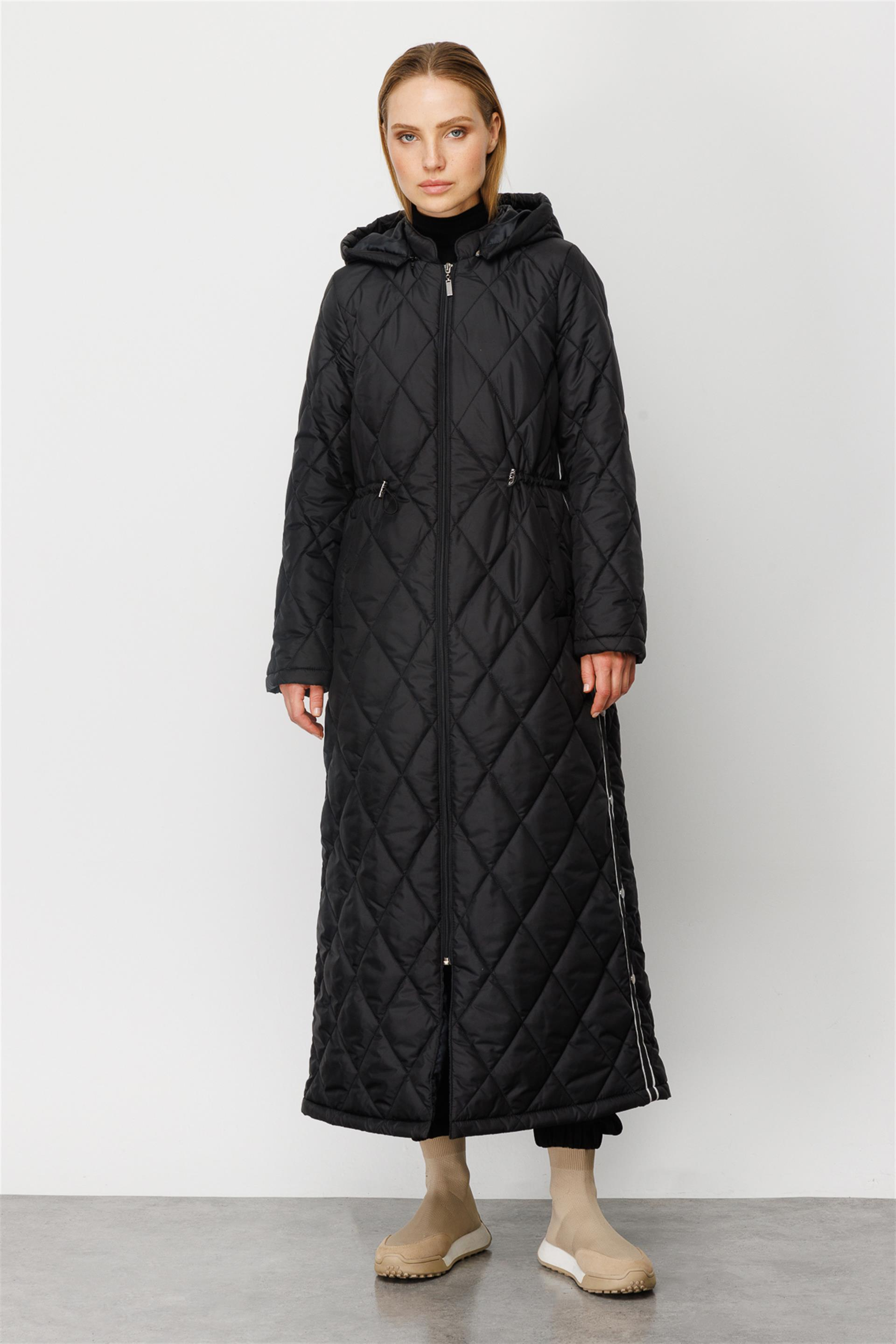 Yanı Çizgi ve Aksesuar Detaylı Extra Spor Kapitone Manto PLUS-Siyah (232565M KABAN-01)