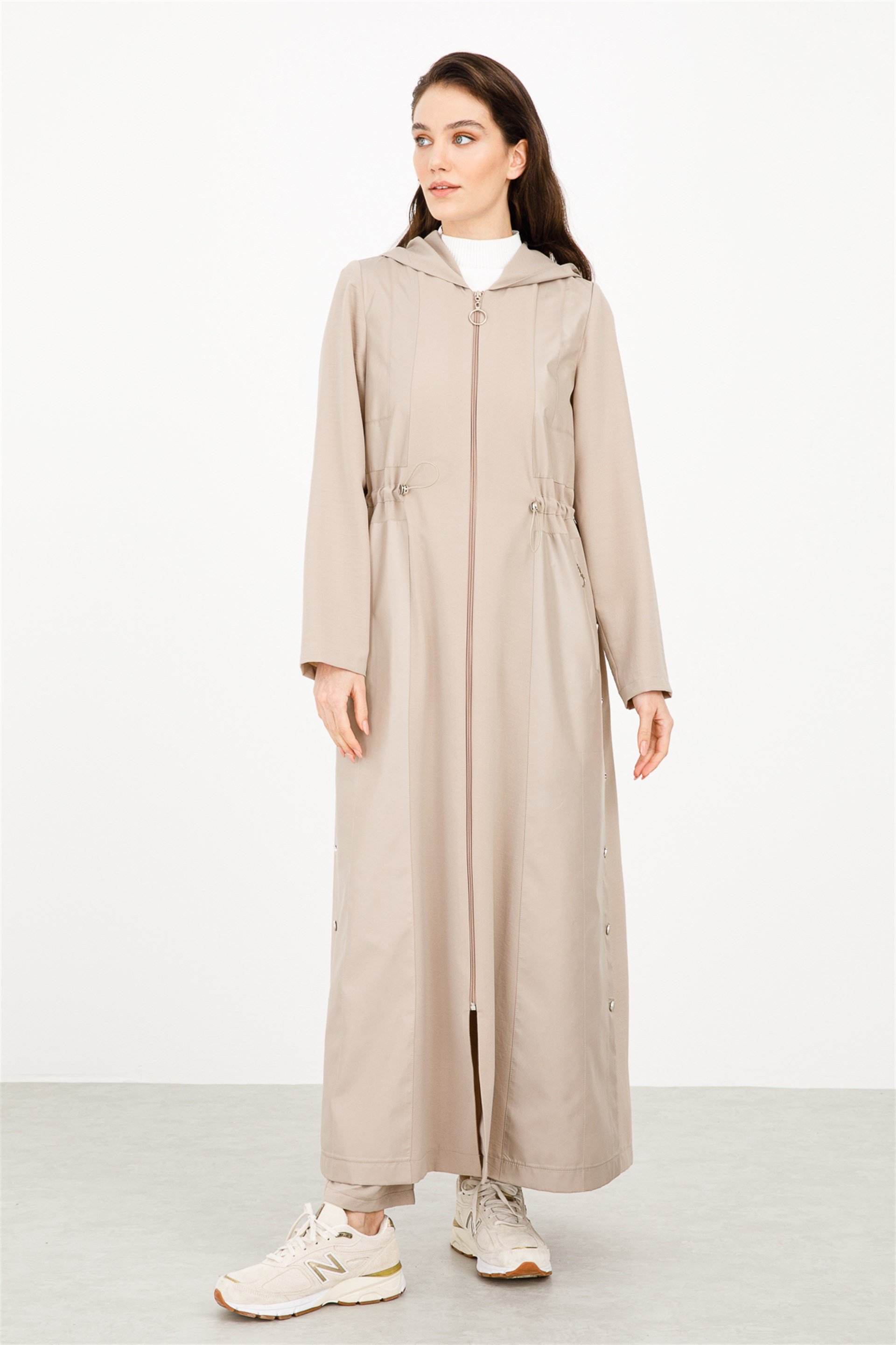 Yanları Çıt Çıtlı Garni Kumaşlı Tam Boy Spor Kap Sabit kapüşonlu, önü fermuarlı, astarsız. Kapüşon ve beden bölümleri garni kumaşlı; yanları çıt çıt aksesuar detaylı, cepleri fermuarlı, belden büzülen tam boy spor kap sizi gündelik hayatınızda hafif ve rahat hissettirecek şekilde tasarlanmış zor kırışan, nefes alan kumaştan üretilmiştir * Beden seçimi yapmadan önce lütfen bedenler üzerinde yer alan renk kutucuklarına tıklamayı unutmayınız! Üretim Ülkesi: Türkiye Sezon: 2021 İlkbahar Yaz Kumaş İçeriği: %100 Polyester Boy Uzunluğu: 138 cm Manken Ölçüleri Giydiği Beden: 38 Boy: 176 cm Göğüs: 88 cm , Bel: 66 cm , Basen: 99 cm