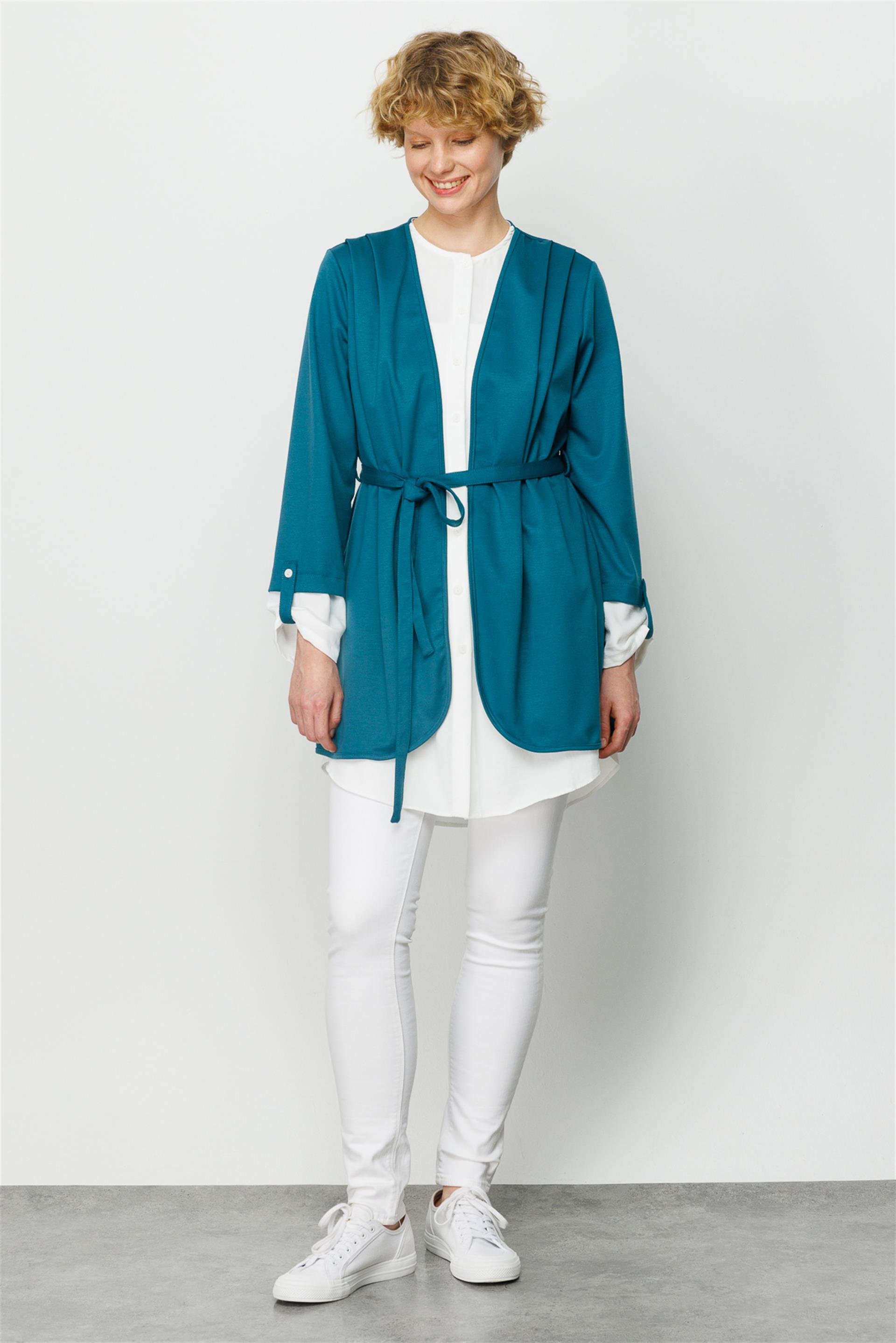 Yeleği Örme İçi Zor Kırışan Kumaş Bütün Olarak Kullanım Sunulan Zamansız Tunik Yelek-Petrol (231411M YELEKLİ TUNİK-29)