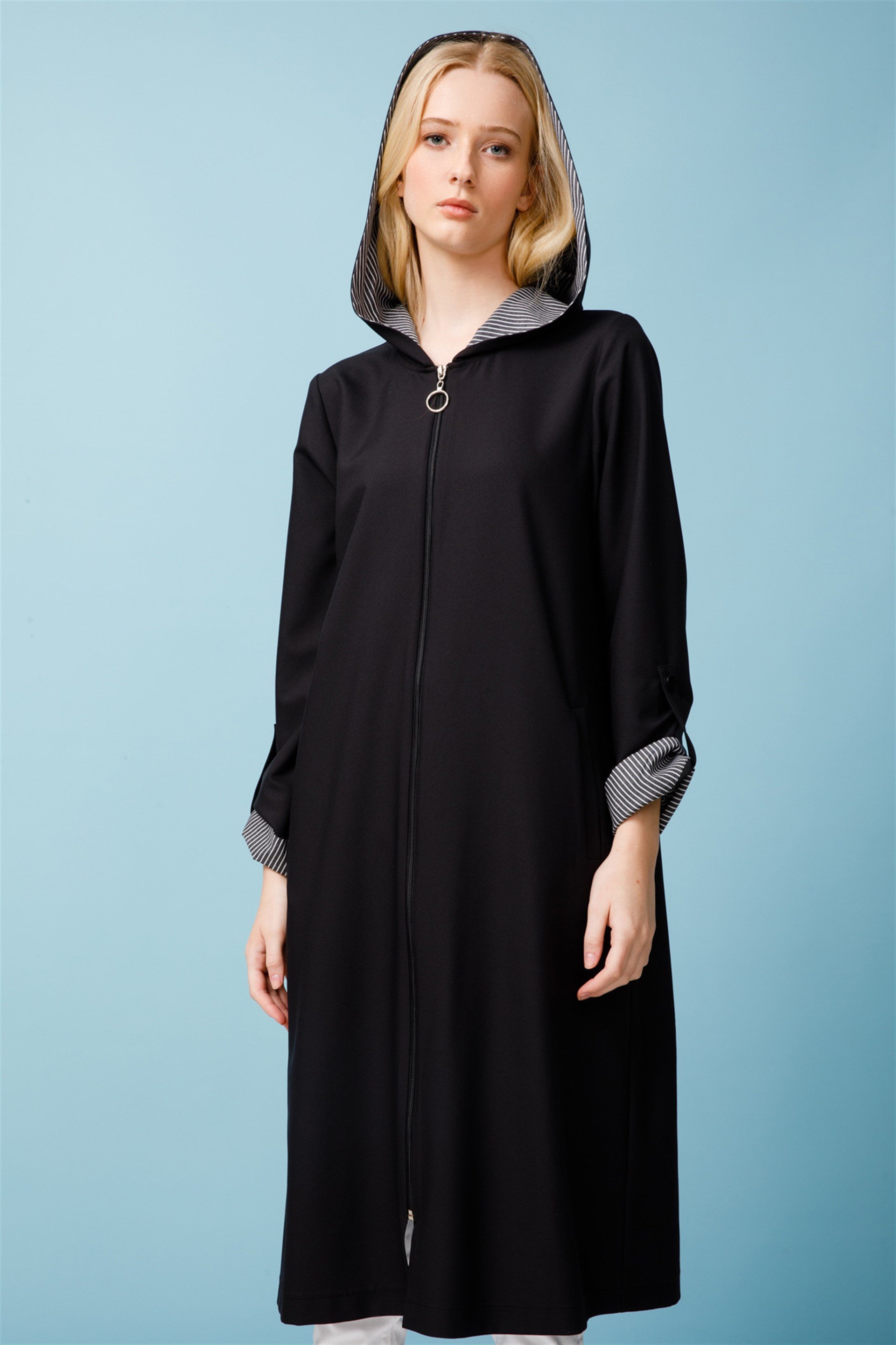 Zamansız Spor Hafif ve Zor Kırışan Kumaştan Marin Detaylı Ara Boy Kap-Siyah (221568M PARDESÜ-01)