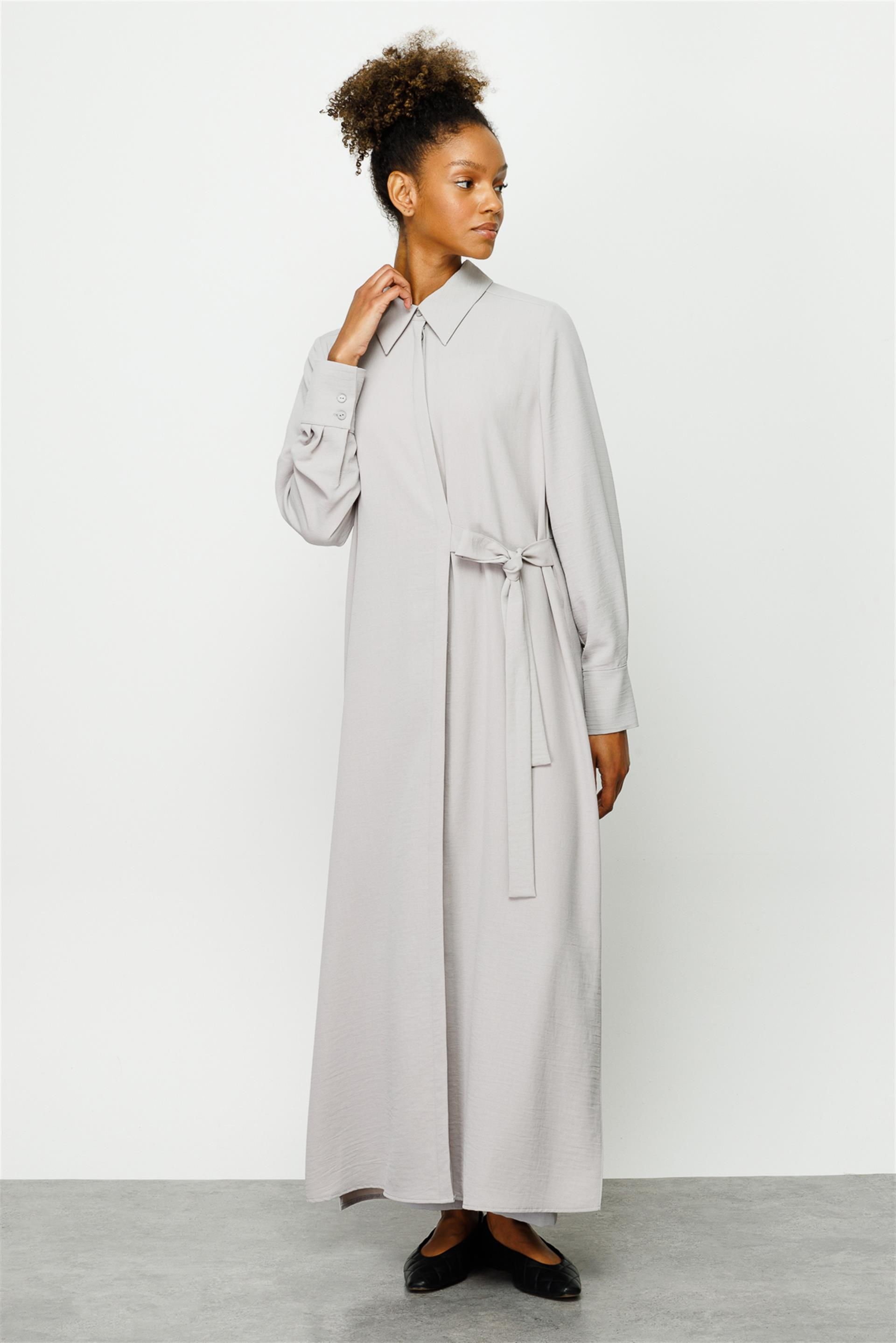 Zarif Sade Ve Zamansız Nefes Alan Zor Kırışan Kumaştan Spor Kap-Gri (231860M YANDAN KUŞAKLI KAP-18)