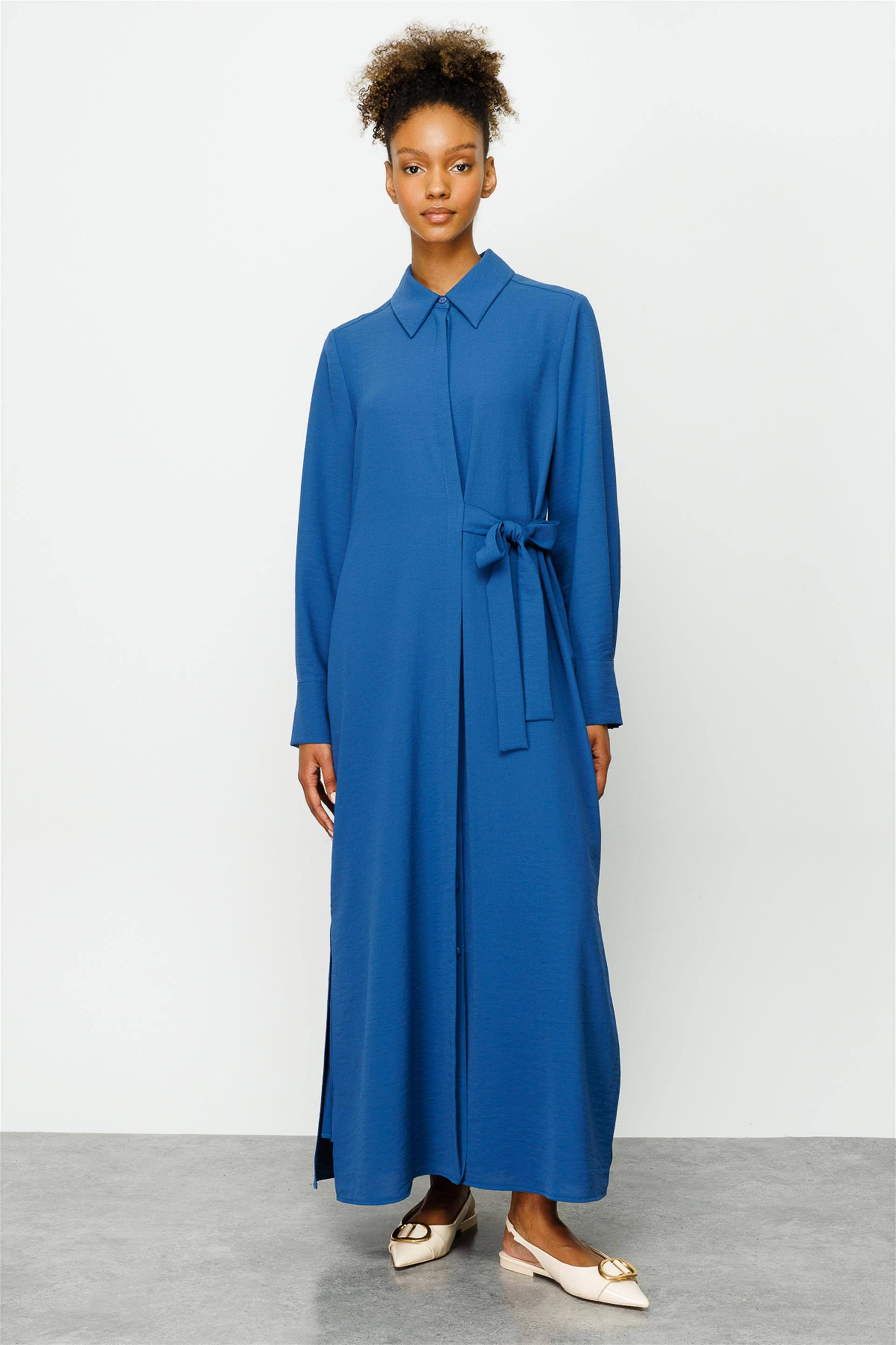 Zarif Sade Ve Zamansız Nefes Alan Zor Kırışan Kumaştan Spor Kap-İndigo (231860M YANDAN KUŞAKLI KAP-44)