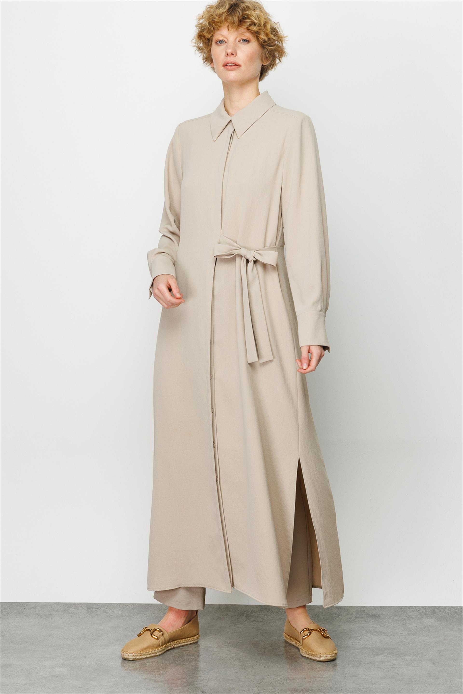 Zarif Sade Ve Zamansız Nefes Alan Zor Kırışan Kumaştan Spor Kap-Taş (231860M YANDAN KUŞAKLI KAP-12)