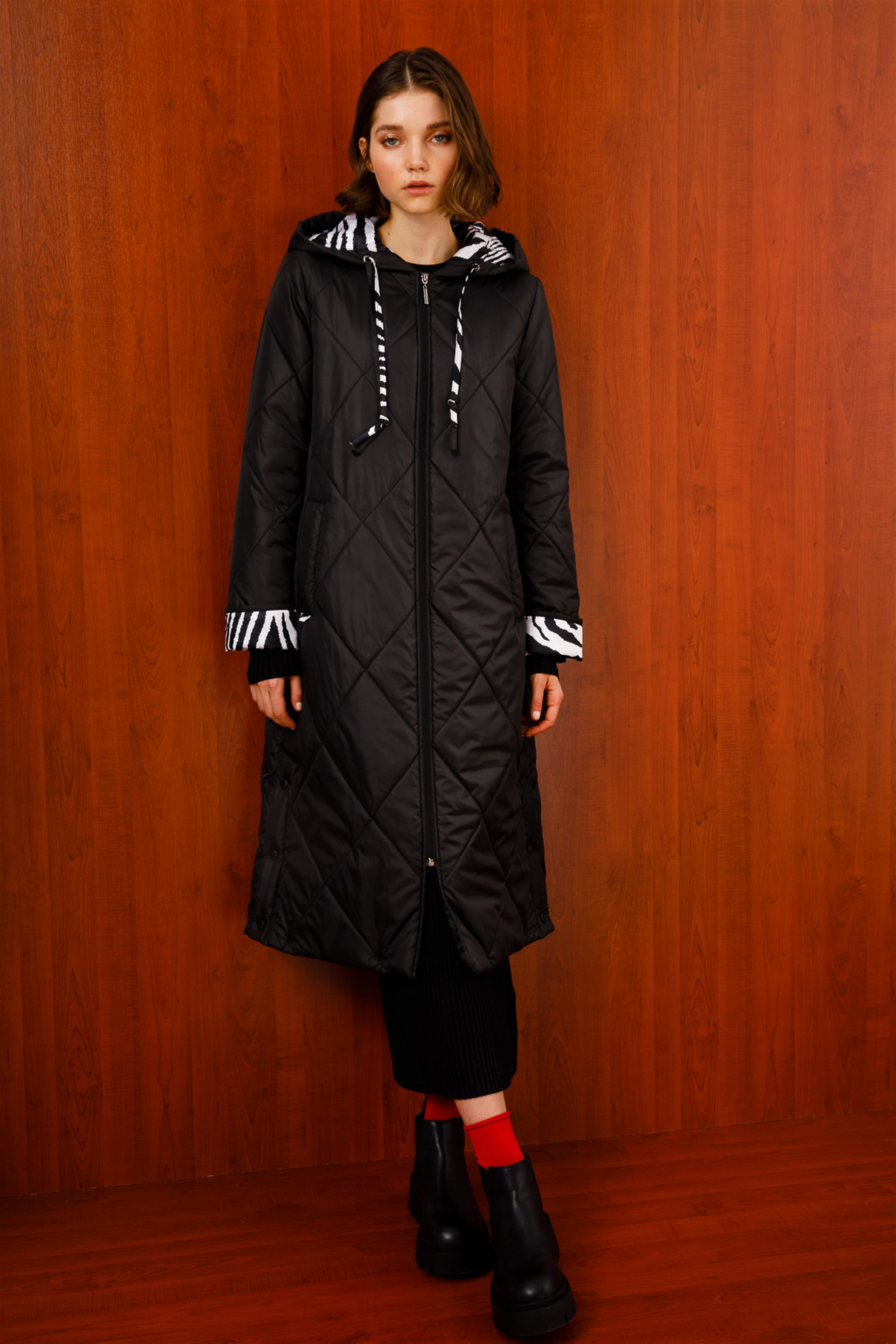 Zebra Desen Garni Detaylı Fermuar Kapamalı Yanları Çıtçıtlı Spor Kap * Beden seçimi yapmadan önce lütfen bedenler üzerinde yer alan renk kutucuklarına tıklamayı unutmayınız! Üretim Ülkesi: Türkiye Sezon: 2021 Sonbahar Kış Kumaş İçeriği: %100 Polyester Boy Uzunluğu: 115 cm Manken Ölçüleri Giydiği Beden: 38 Boy: 176 cm Göğüs: 88 cm , Bel: 66 cm , Basen: 99 cm