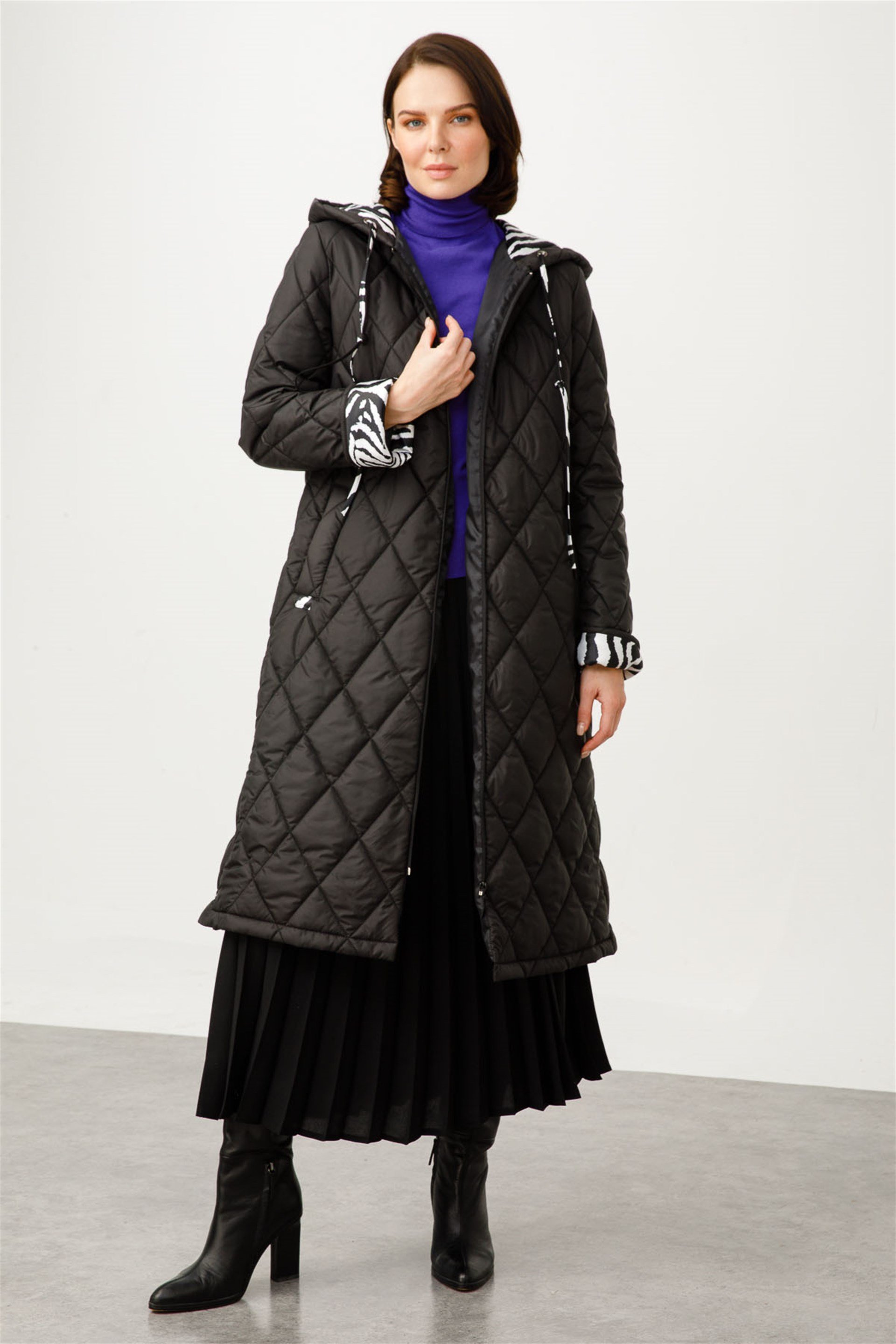 Zebra Garni Detaylı Spor ve Zamansız Manto-Siyah