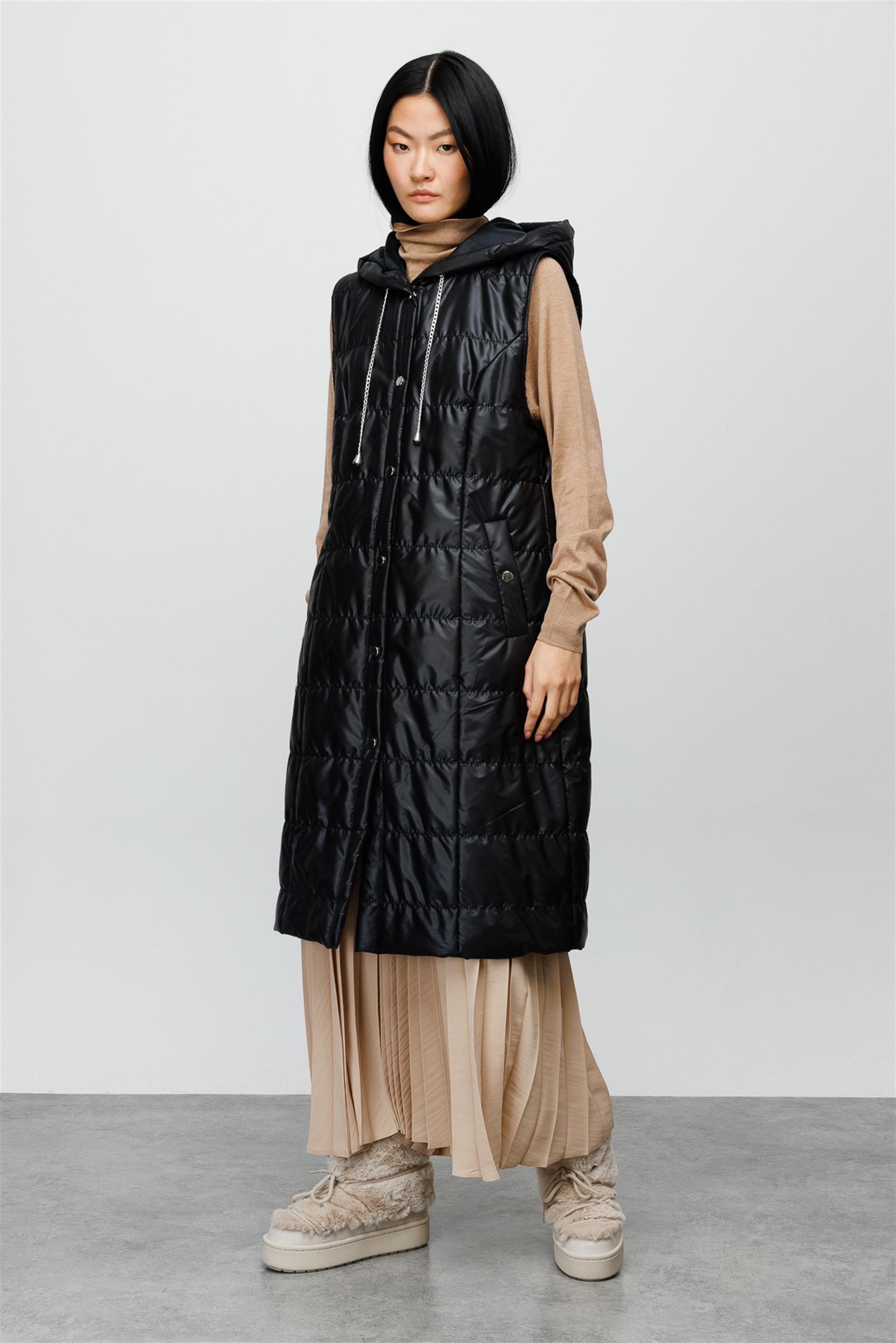 Zincir Garni Kapitone Baharlık Yelek-Siyah